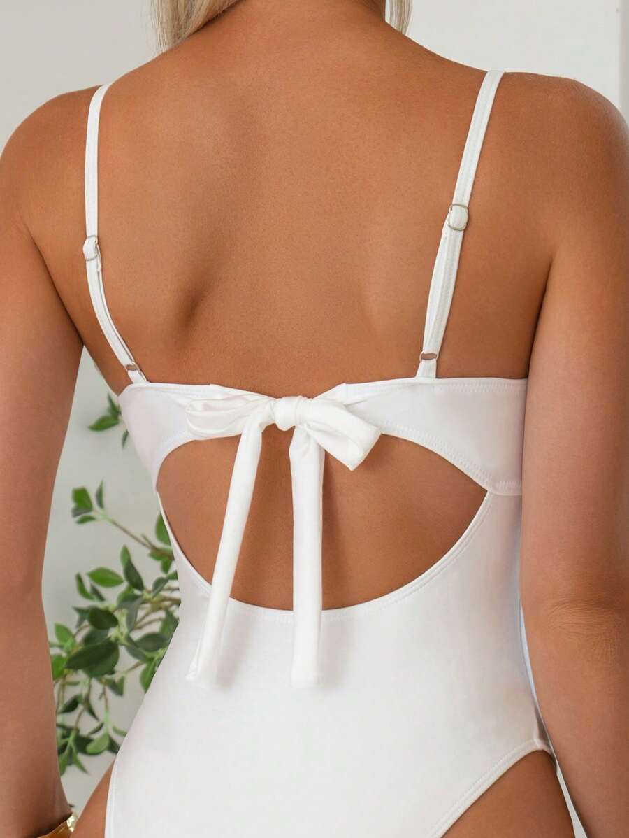 Traje de bano monokini de mujer con unicolor, elegante decoracion de cadena blanca, copa acolchada suave y corte alto que estiliza y es sexy