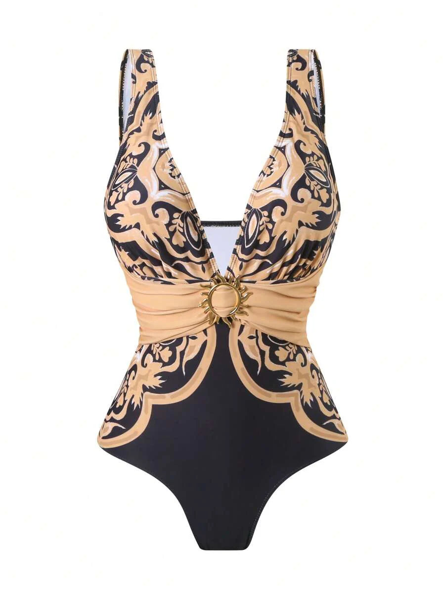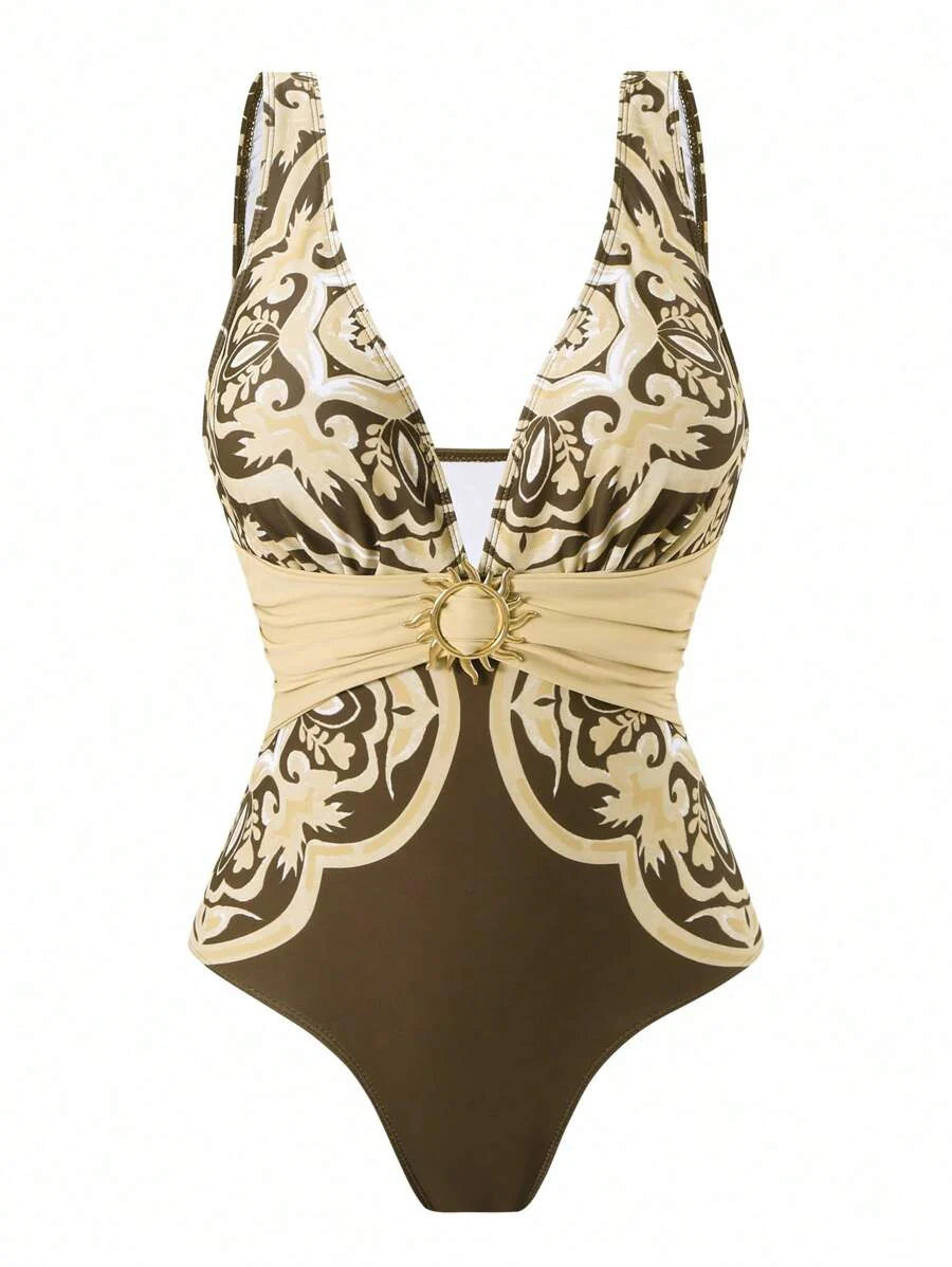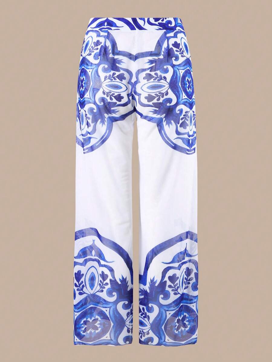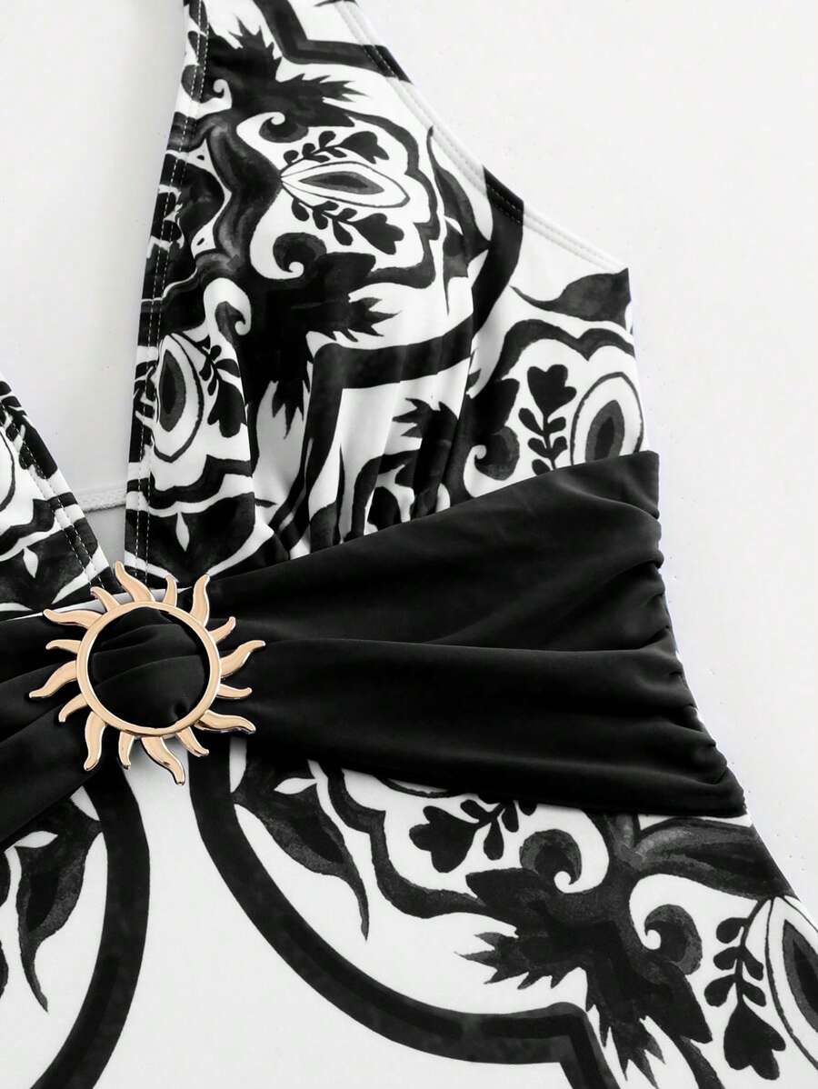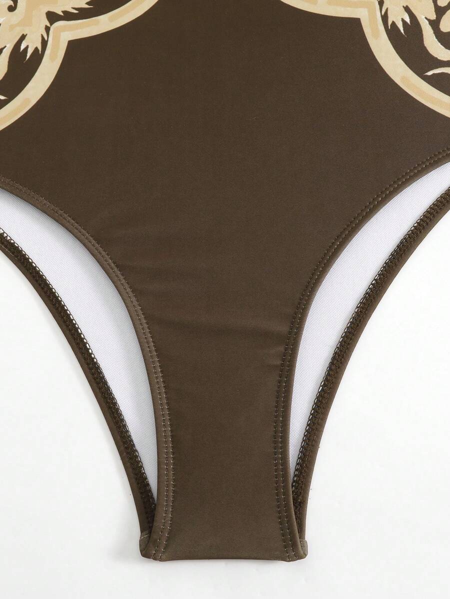 Oasis conjunto de 3 piezas 2025 nuevo: enterizo estampado con falda y pantalones de malla para mujer, conjunto de vacaciones de playa casual de verano