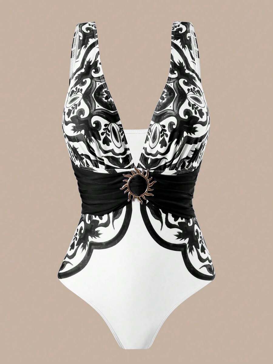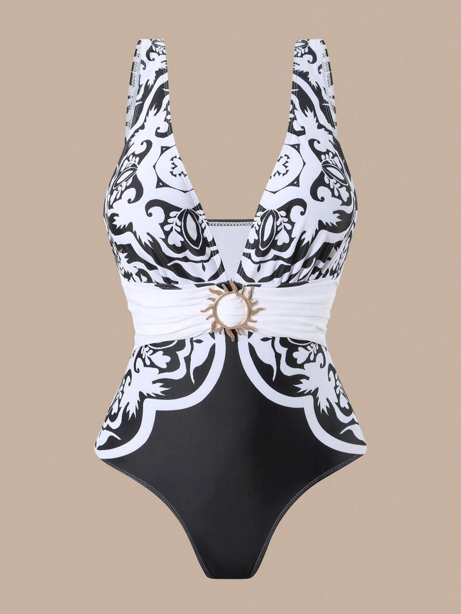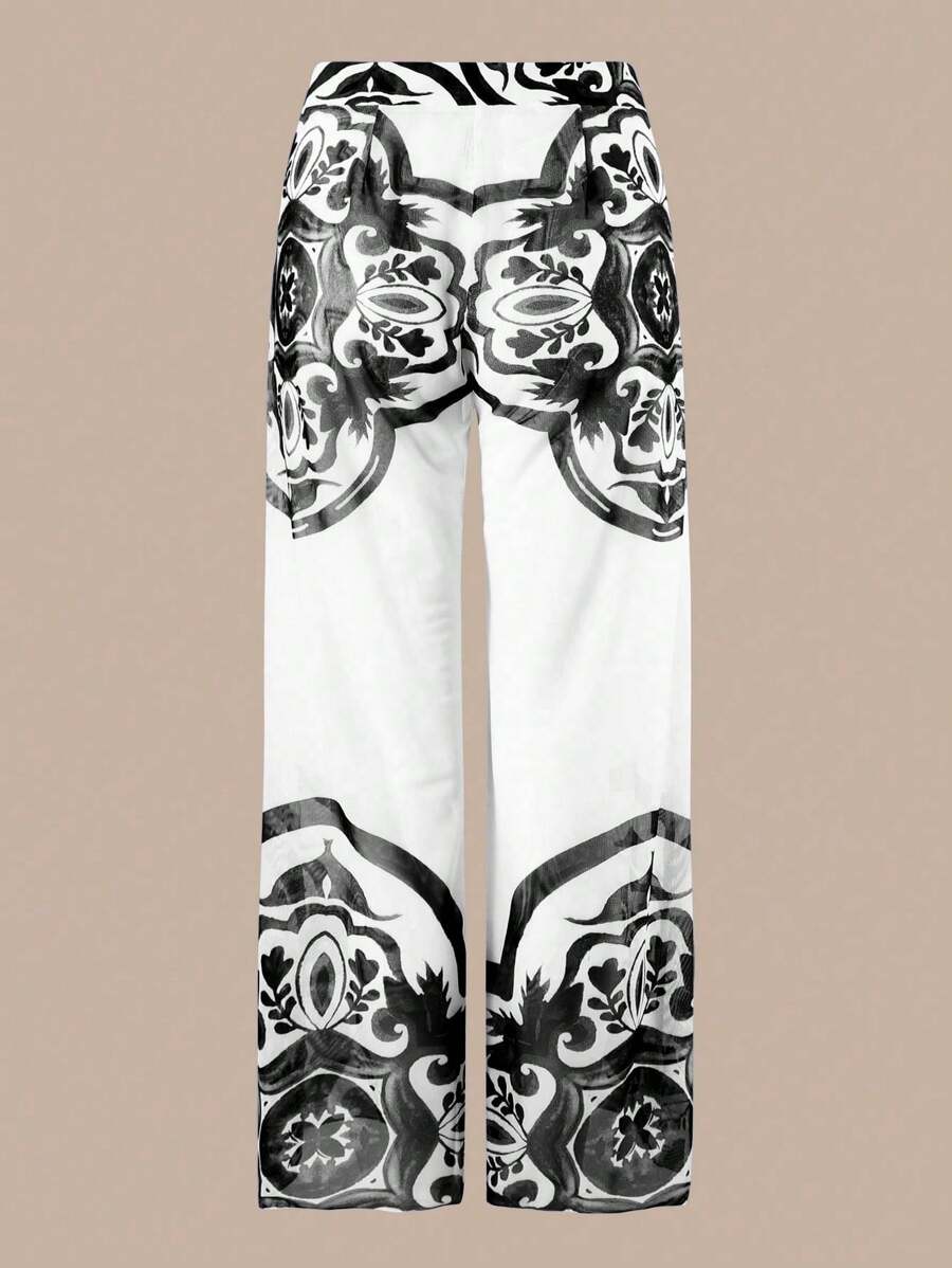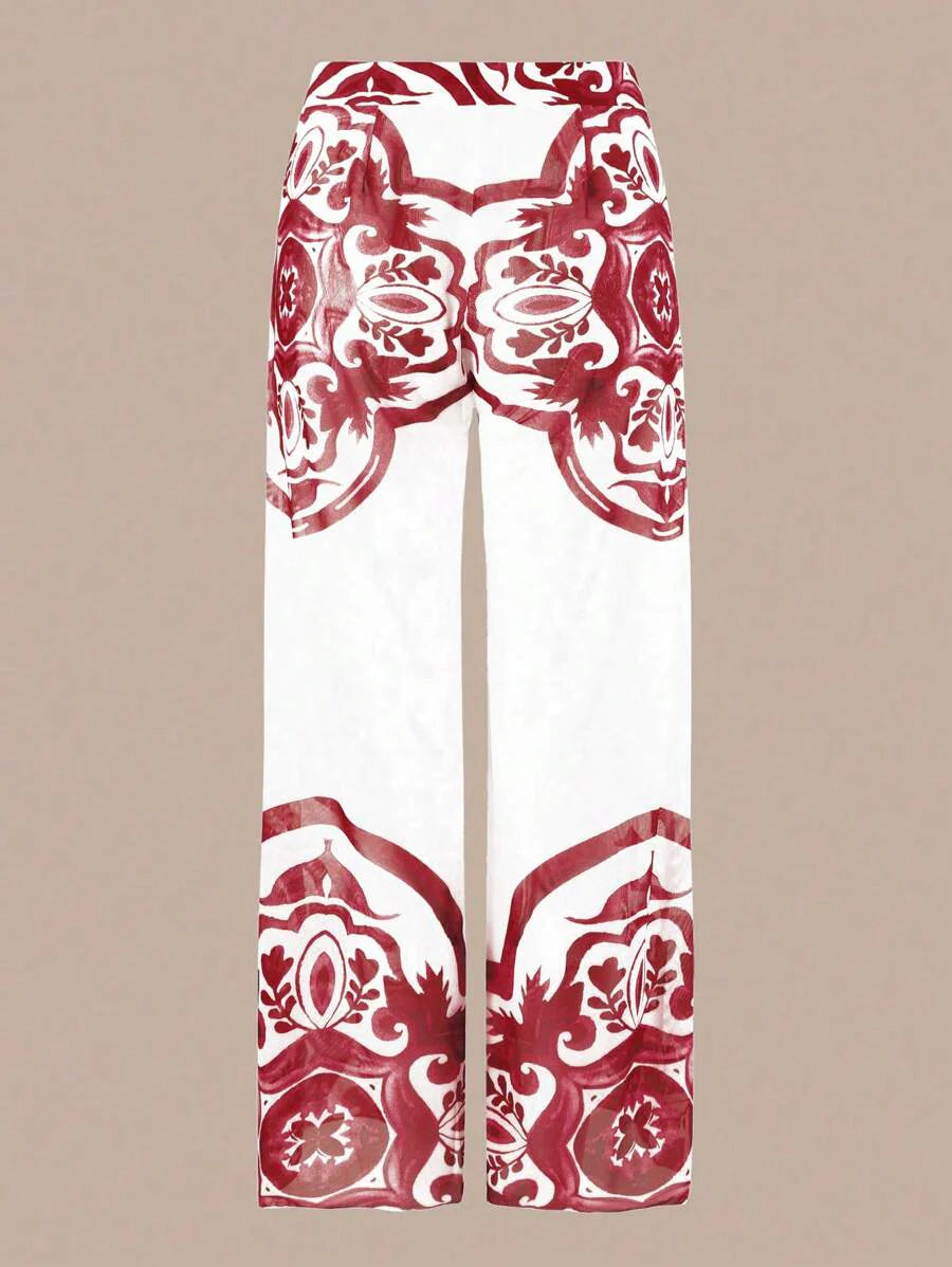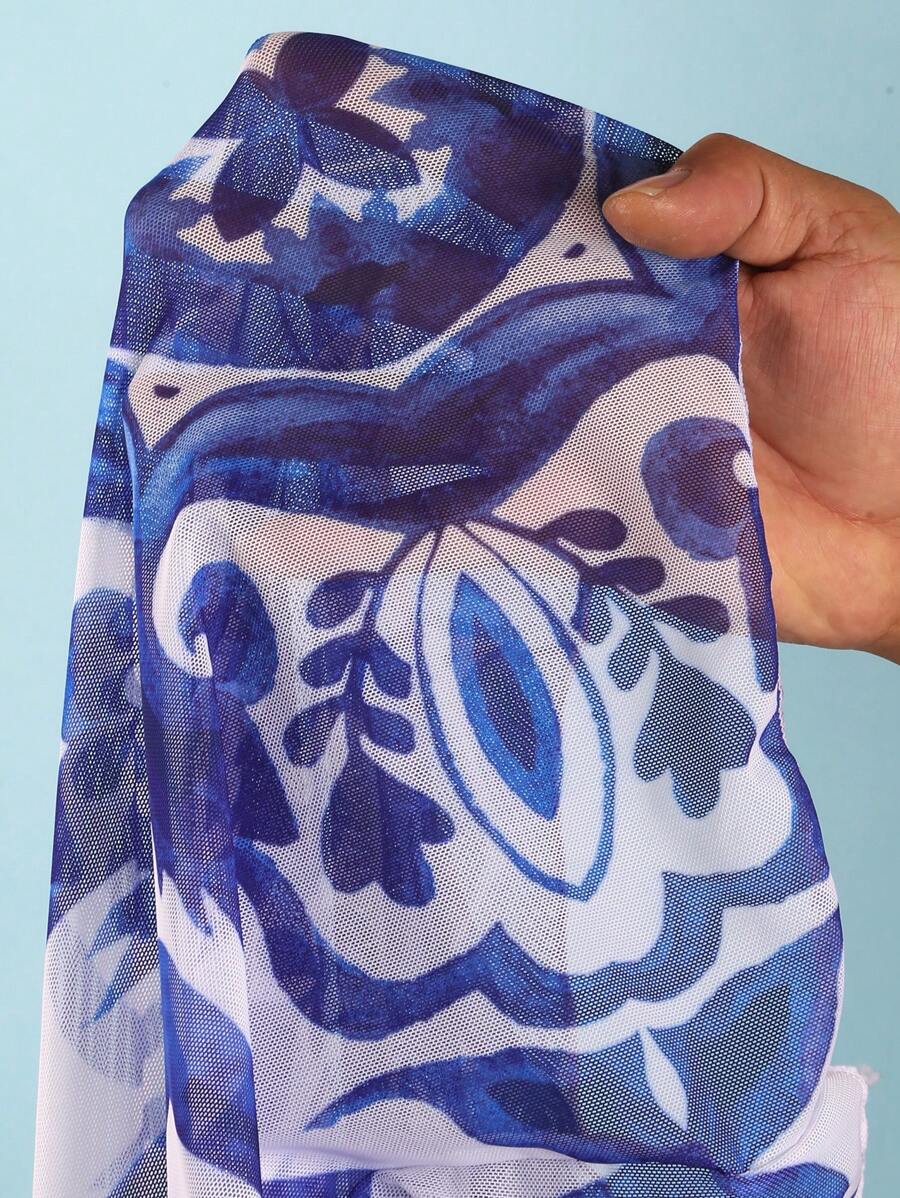 Oasis conjunto de 3 piezas 2025 nuevo: enterizo estampado con falda y pantalones de malla para mujer, conjunto de vacaciones de playa casual de verano
