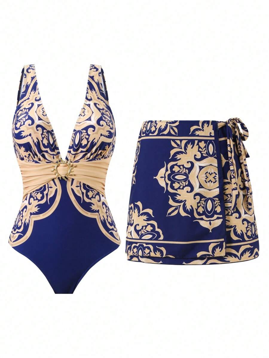 Oasis conjunto de 3 piezas 2025 nuevo: enterizo estampado con falda y – Muy Bonita