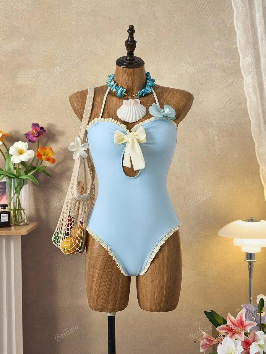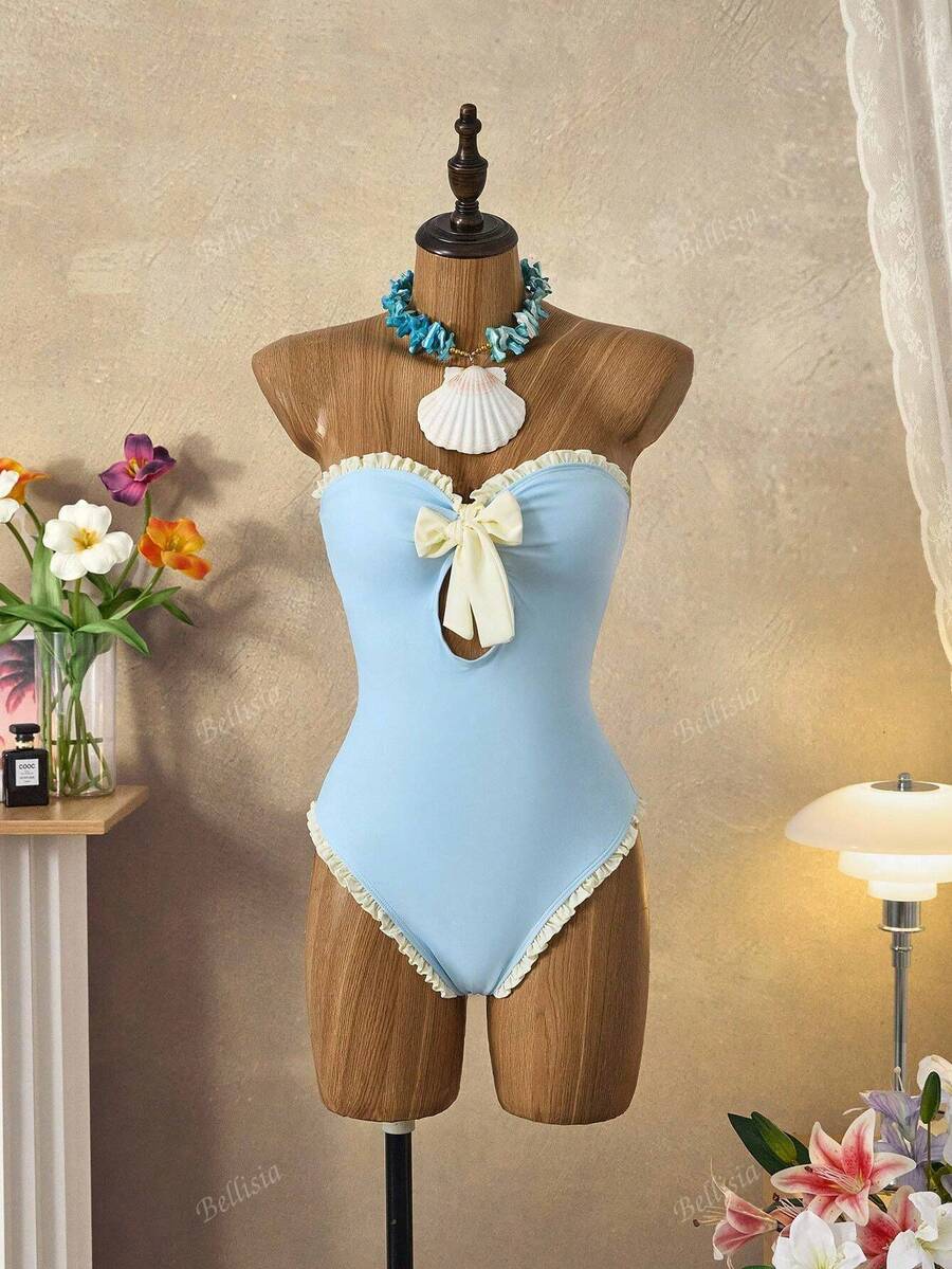 Bellisia traje de bano de una pieza con nudo delantero y hueco, estilo de vacaciones de moda para mujer