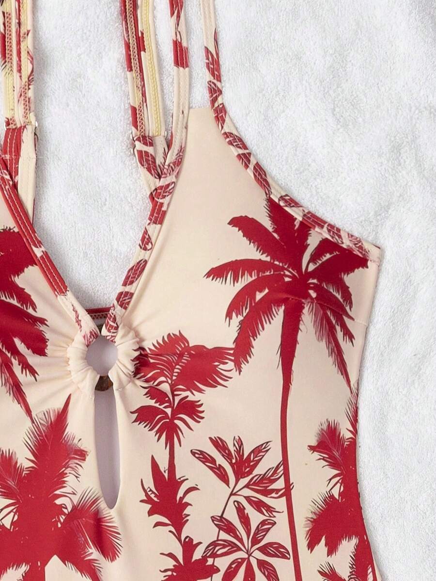 Traje de bano de una pieza con estampado de palmeras tropicales y espa – Muy Bonita