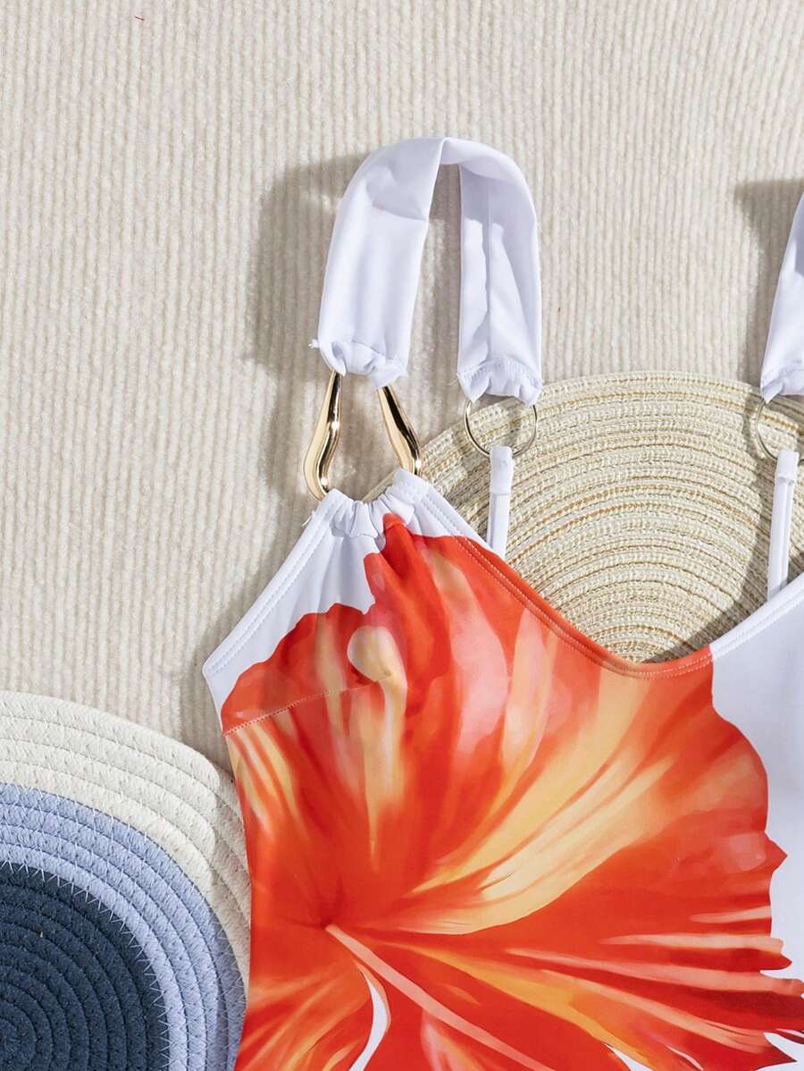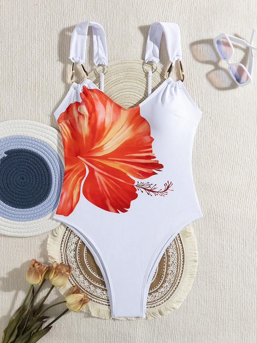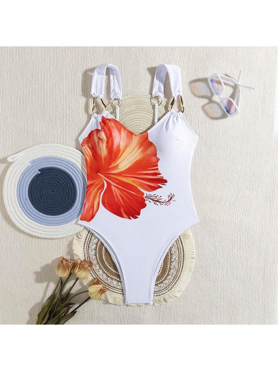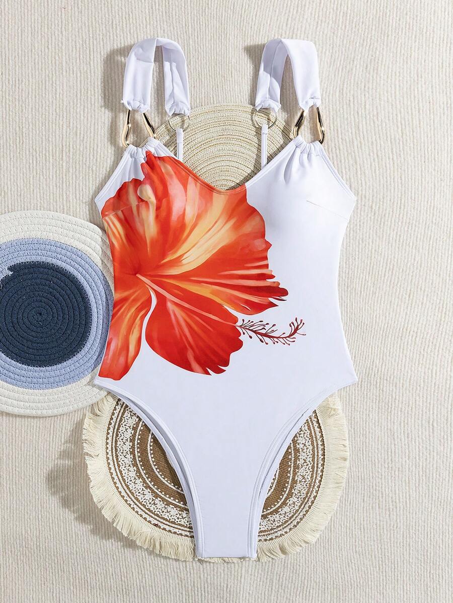 1 pieza traje de bano de una sola pieza sexy con estampado floral – Muy Bonita