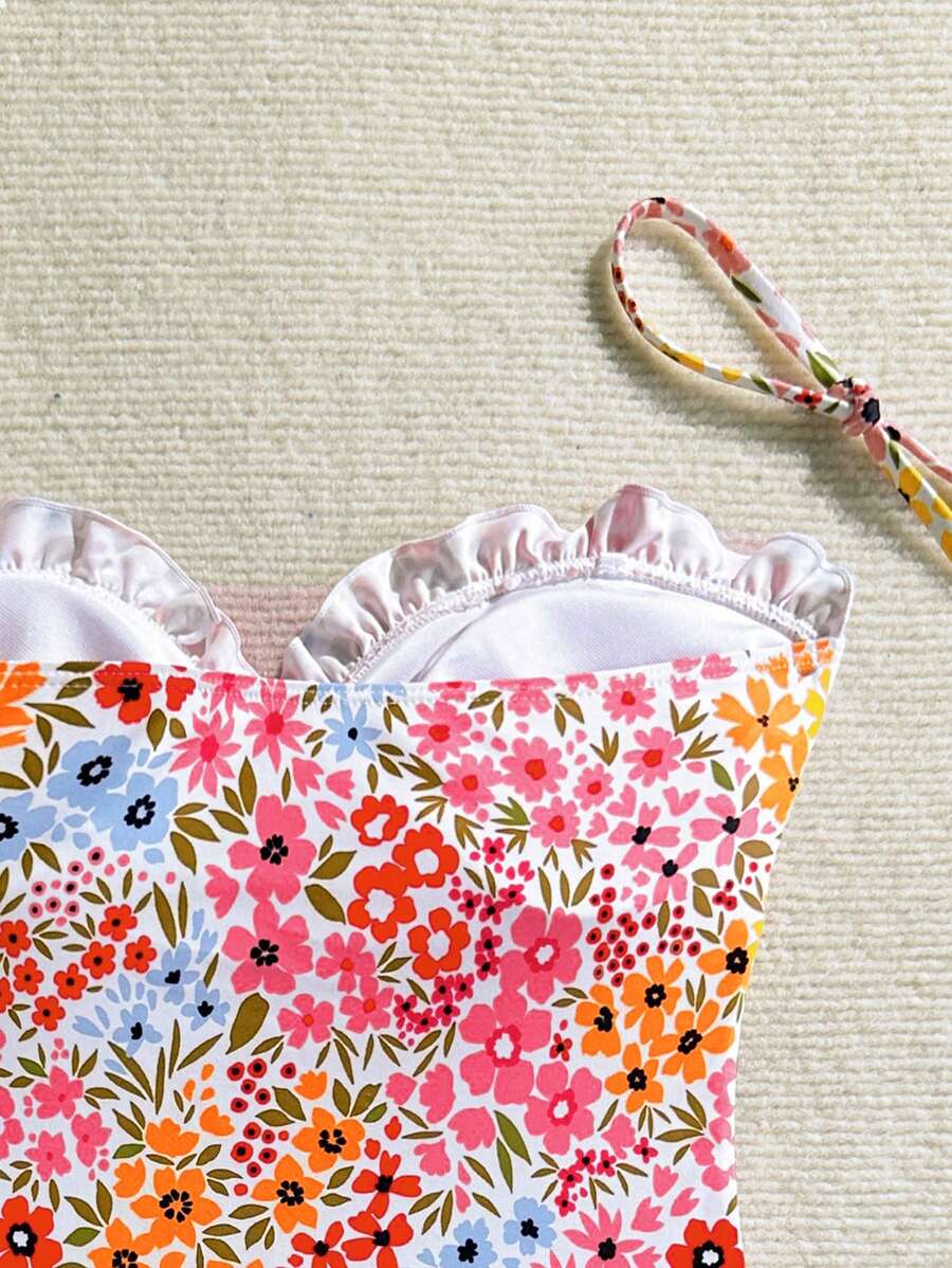 1 pieza vestido de playa con volantes y estampado floral diminuto, con – Muy Bonita