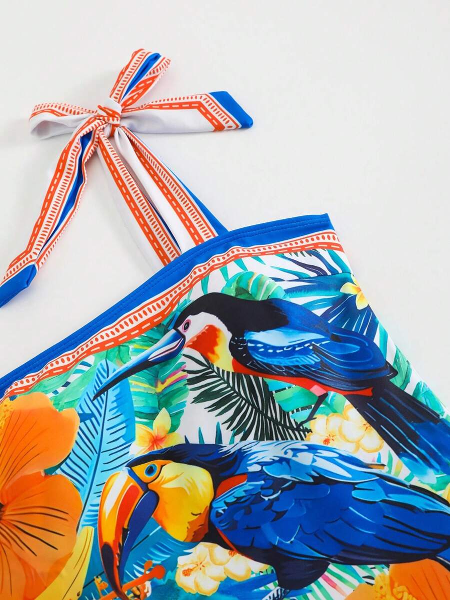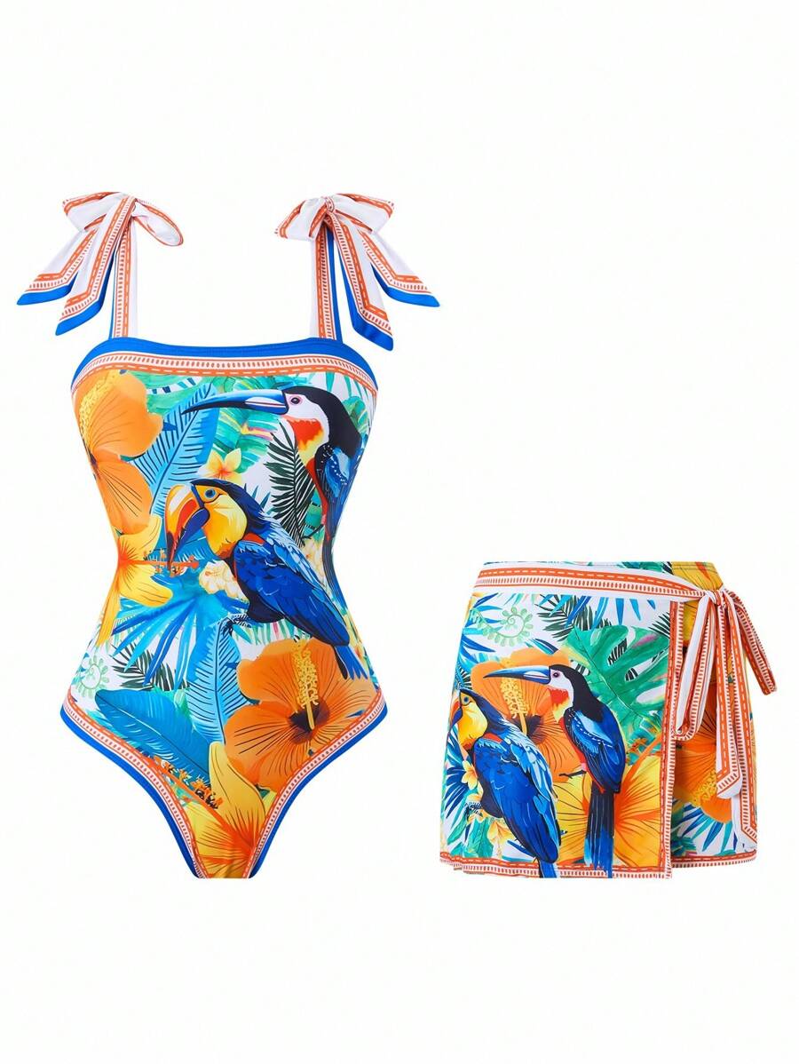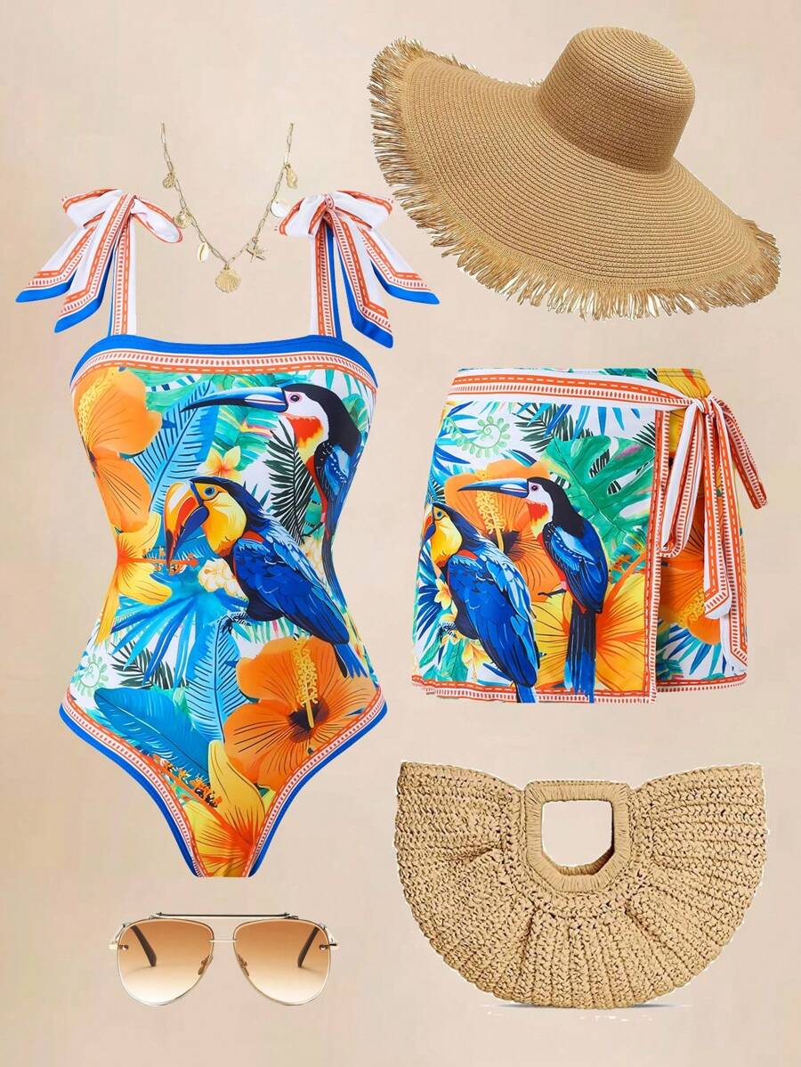 Oasis traje de bano de una pieza con estampado tropical de flores y loros, estilo europeo y americano para mujeres