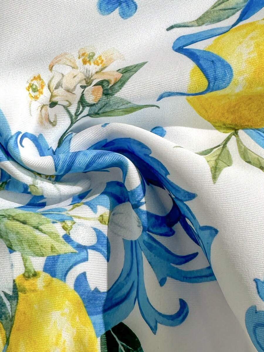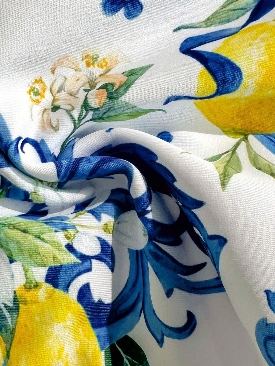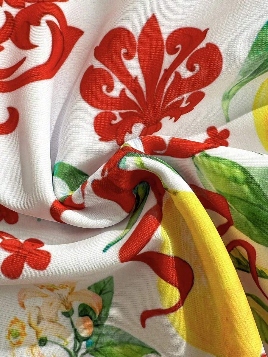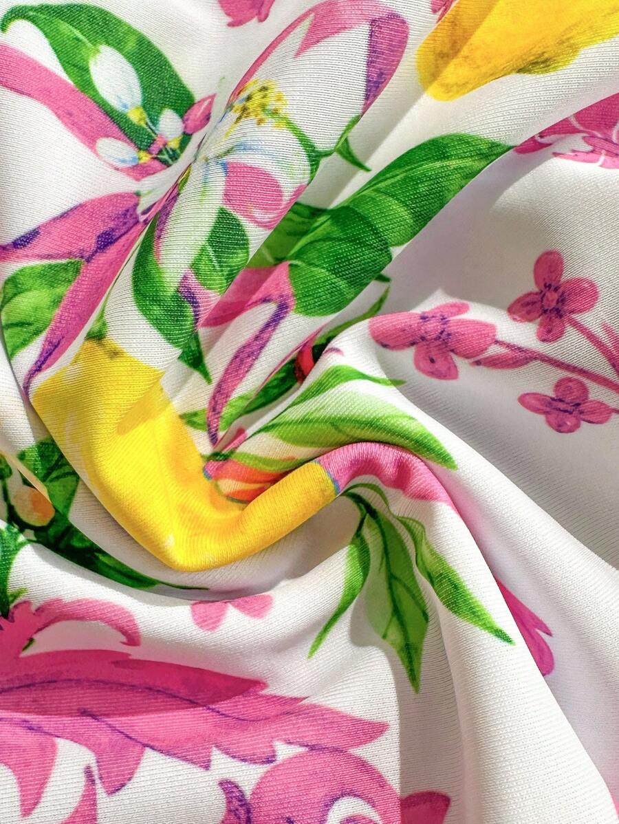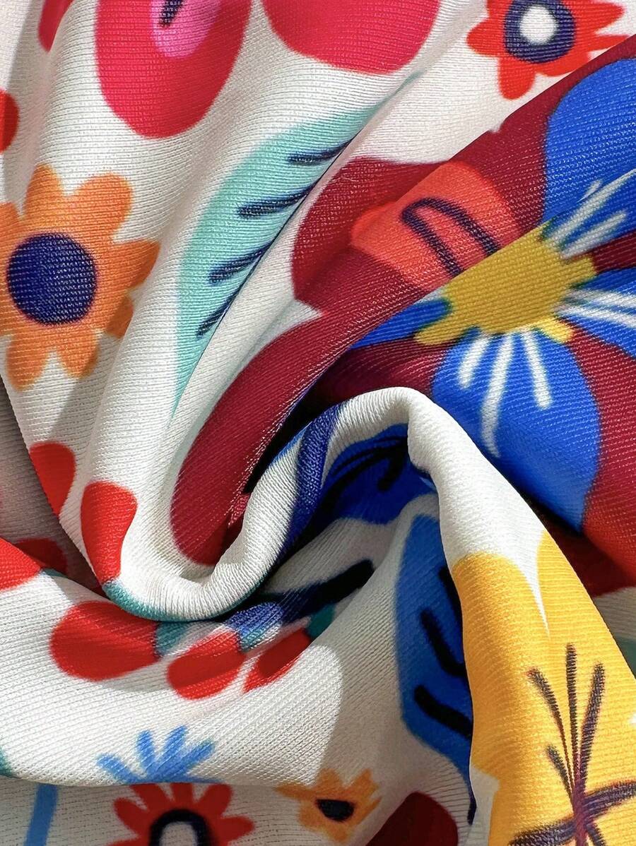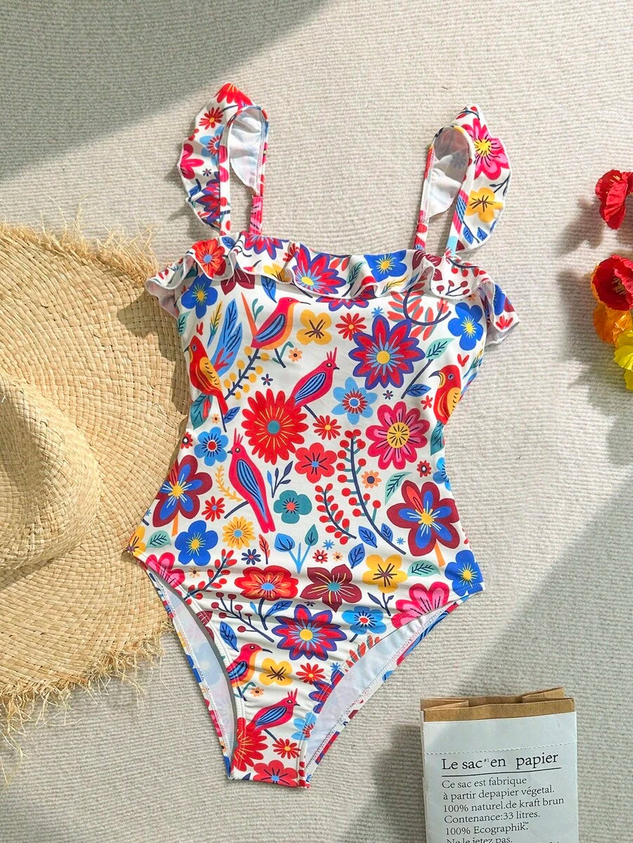 Traje de bano de una pieza sexy con volantes, abertura y estampado tropical de flores y frutas para mujer