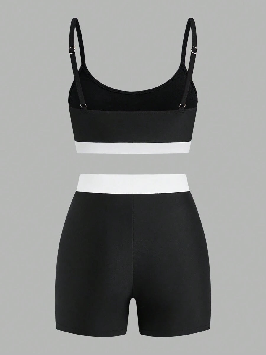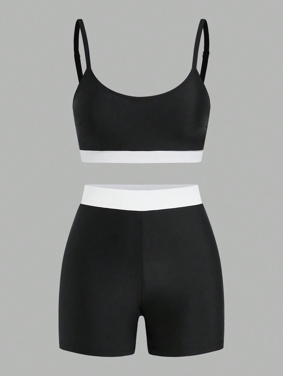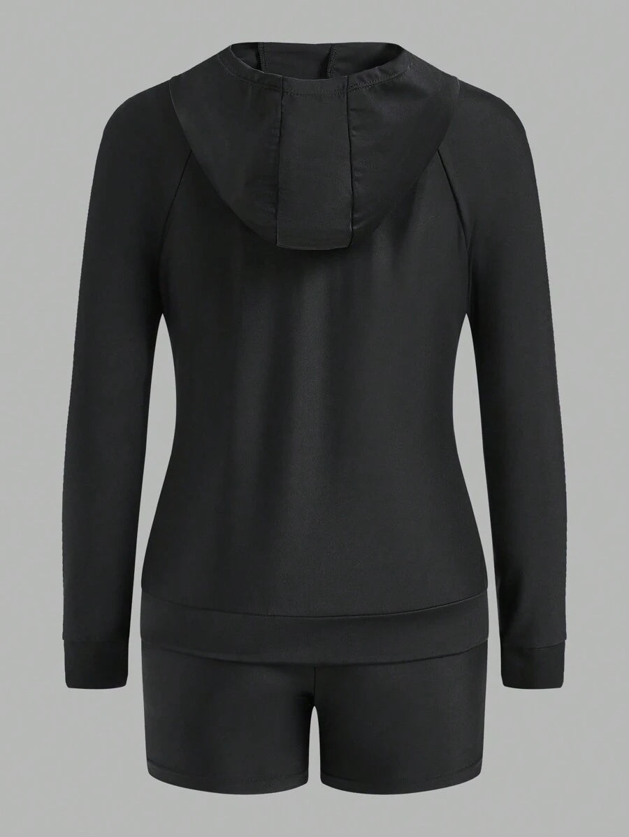Chaqueta larga de mujer con cremallera delantera lisa, parte superior minimalista de tirantes finos con empalmes lisos y shorts para surf de verano