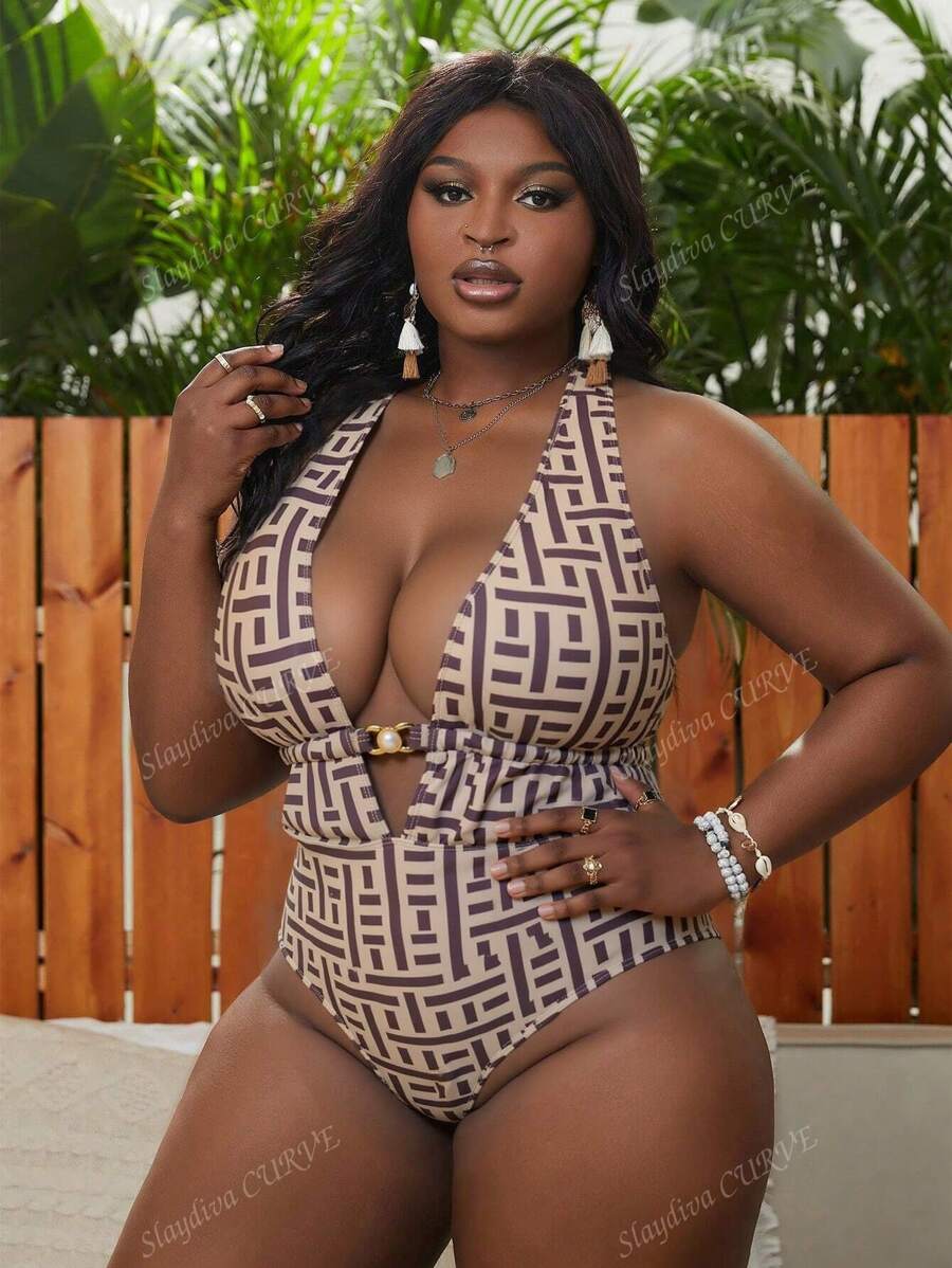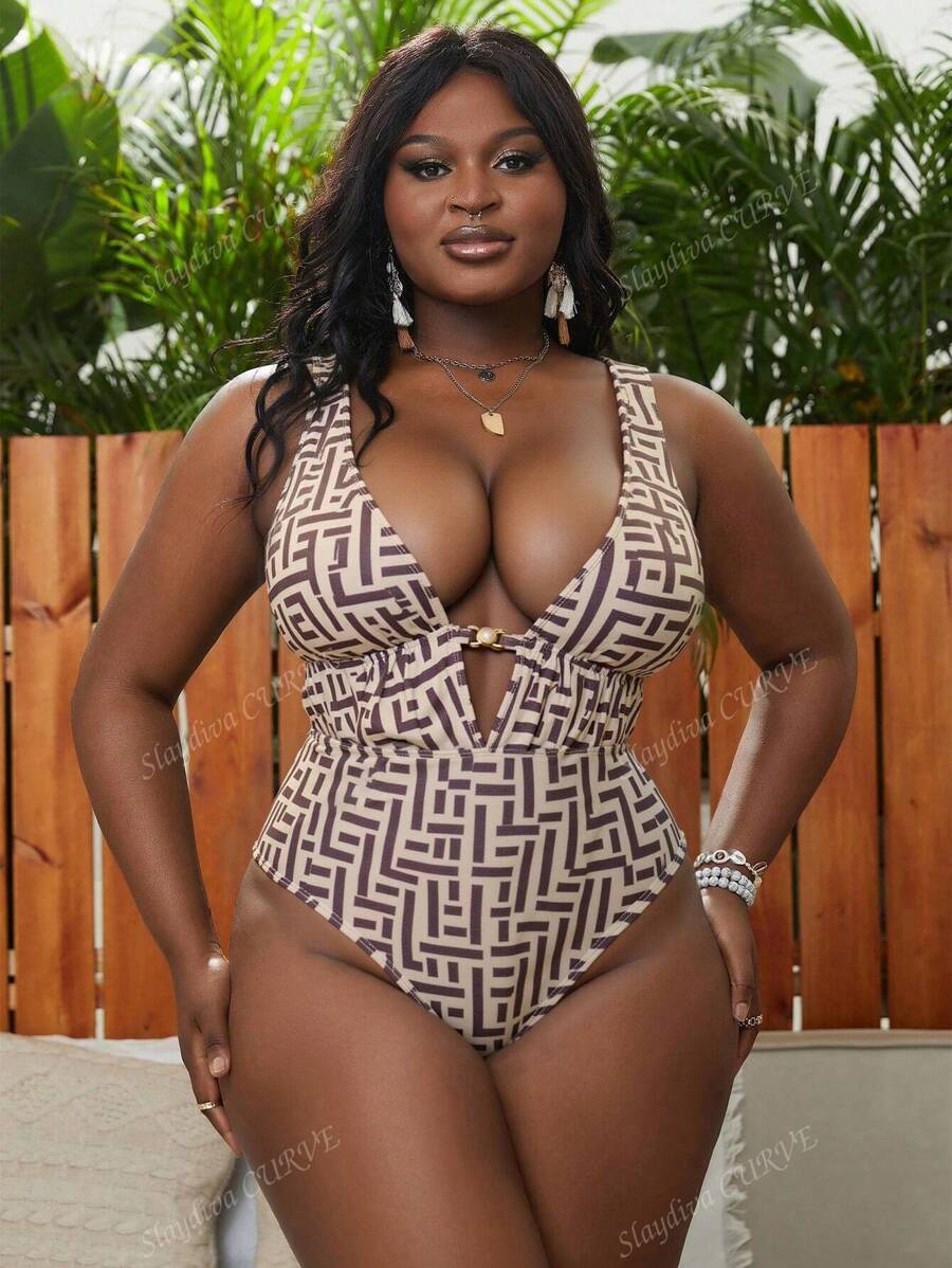 Traje de bano de una pieza con escote en v para tallas grandes de vera – Muy Bonita