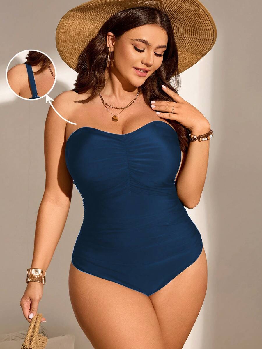 Lushoire traje de bano de una pieza con drapeado de unicolor para mujer de talla grande, estilo vacaciones