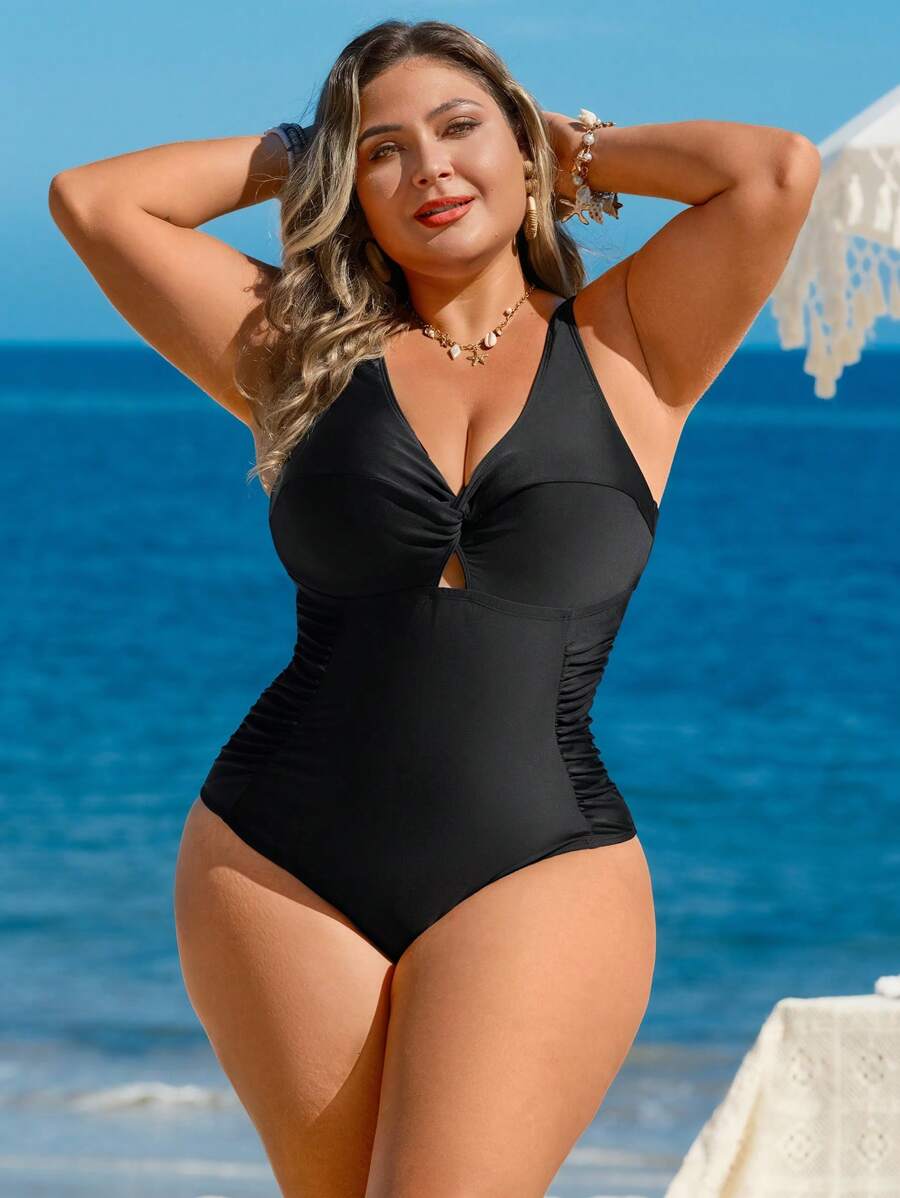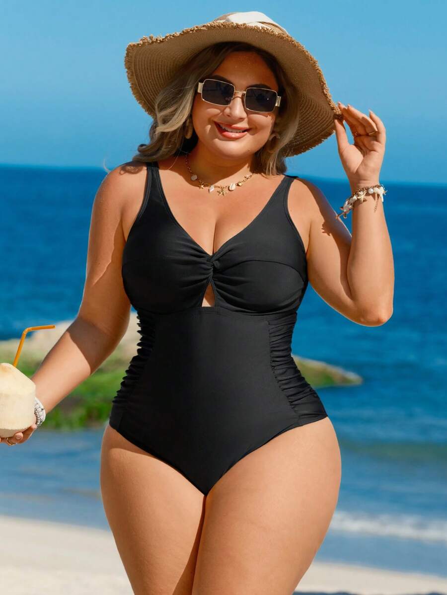 Lushoire traje de bano de una pieza para mujer de talla grande con nud – Muy Bonita