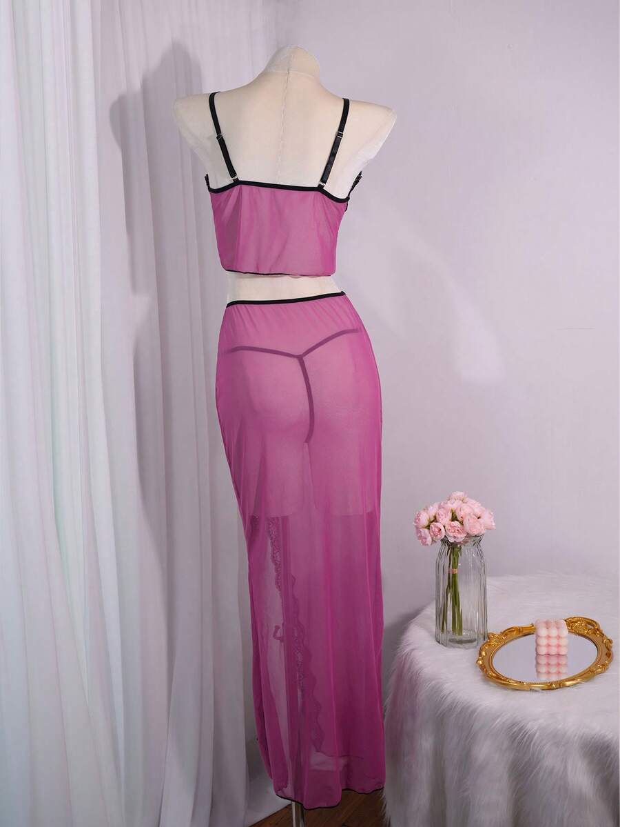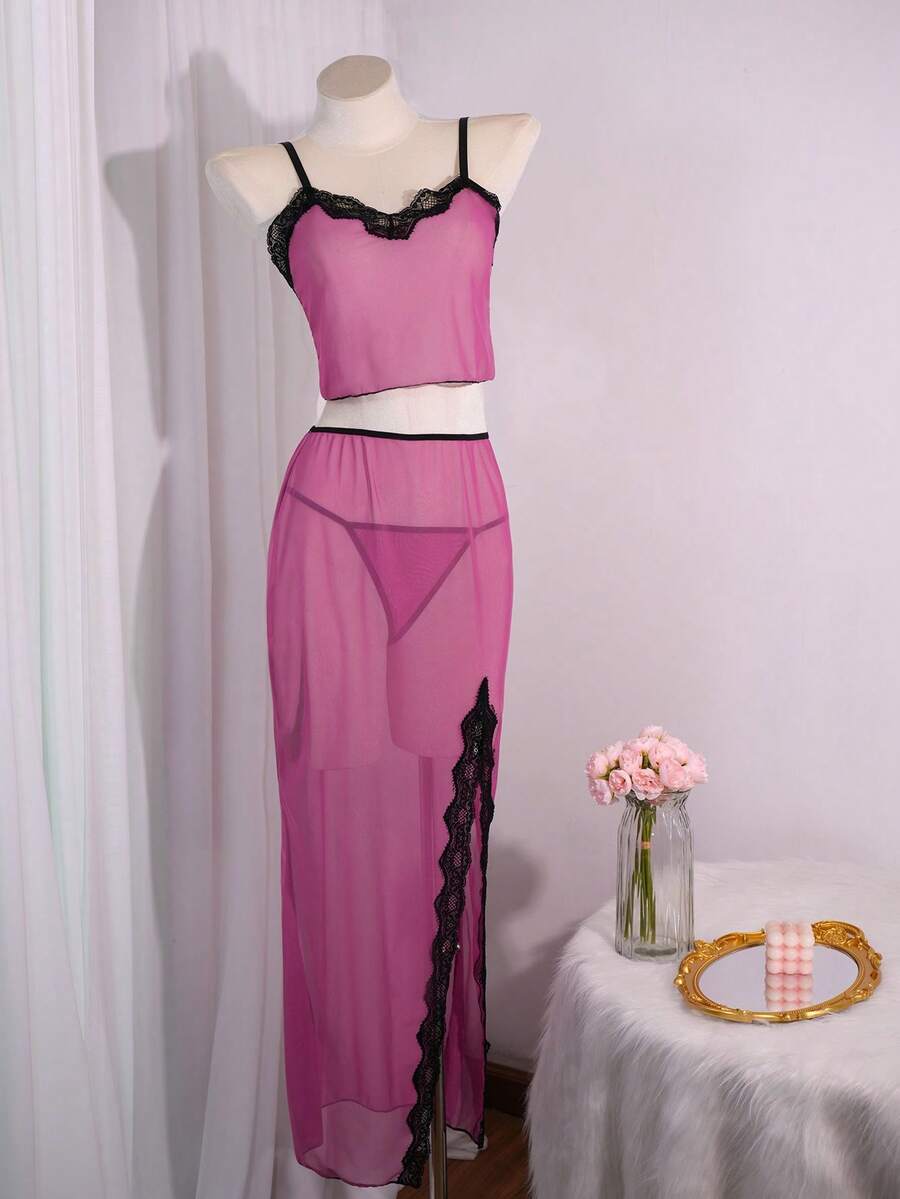3 piezas camison sexy y elegante de mujer en color morado, muy adecuado para citas nocturnas