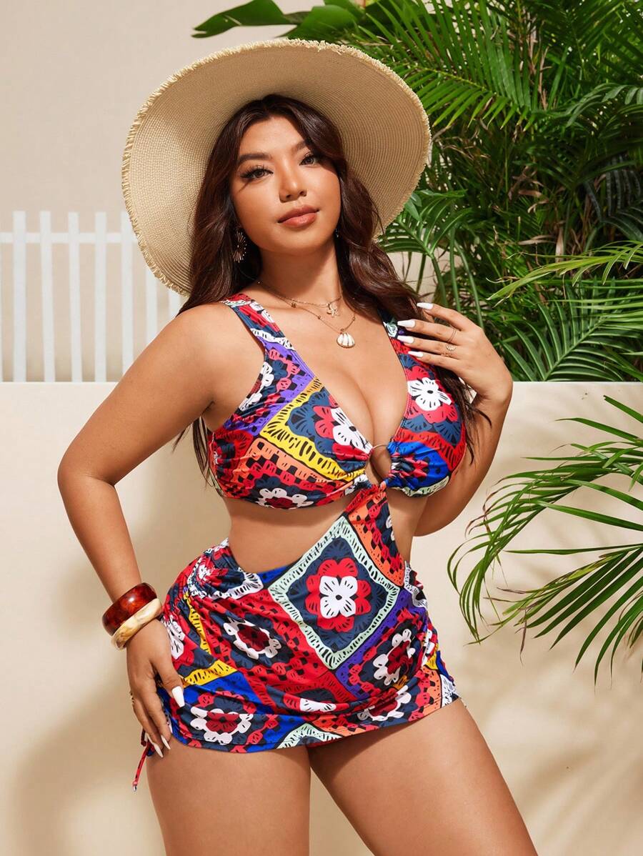 Slaysola traje de bano de falda de verano minimalista y de moda con estampado aleatorio para mujer de talla grande