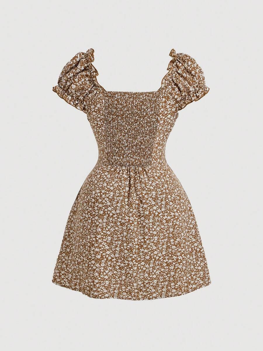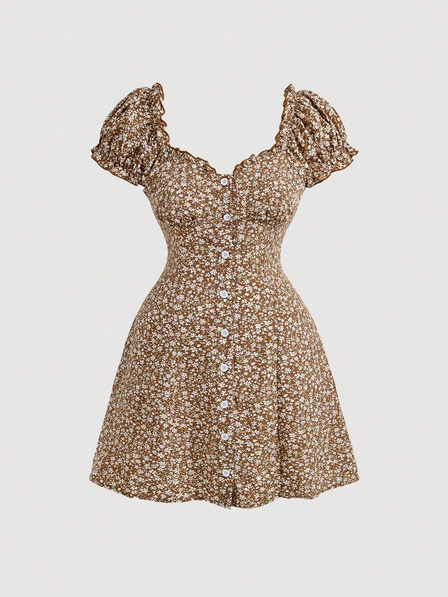 Vestido vintage con volantes, estampado floral diminuto y escote de co – Muy Bonita