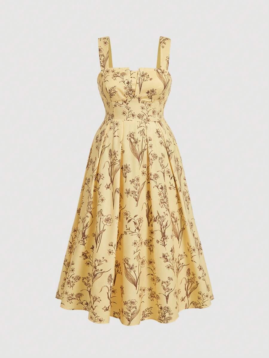 Vestido camisero elegante con pliegues y estampado floral retro para m – Muy Bonita