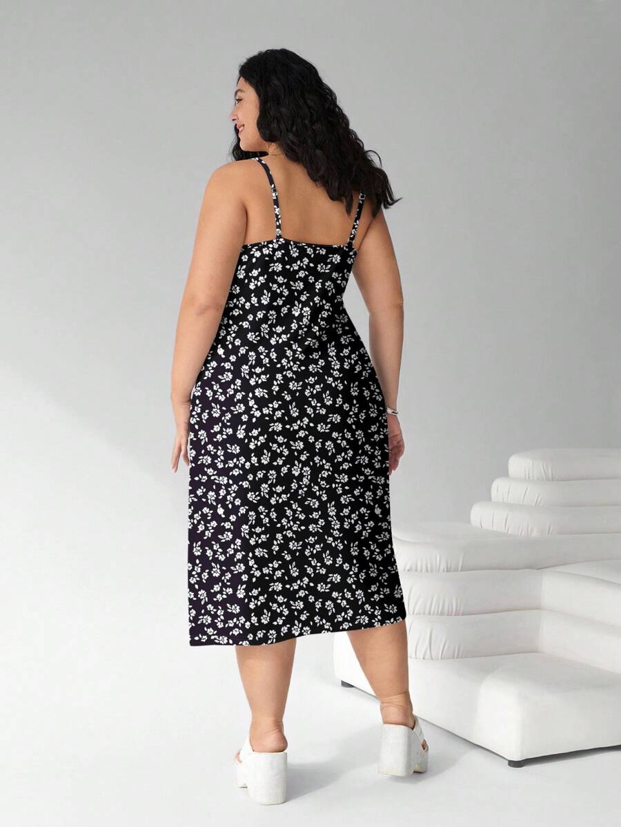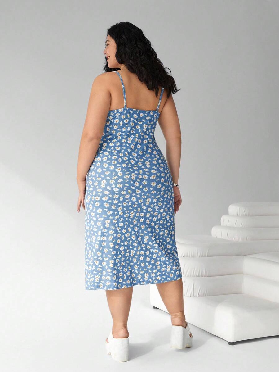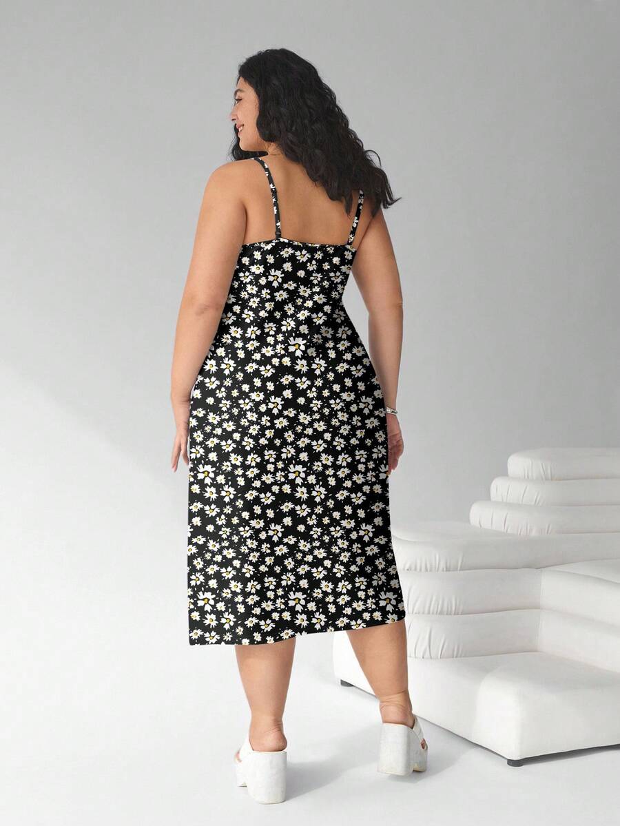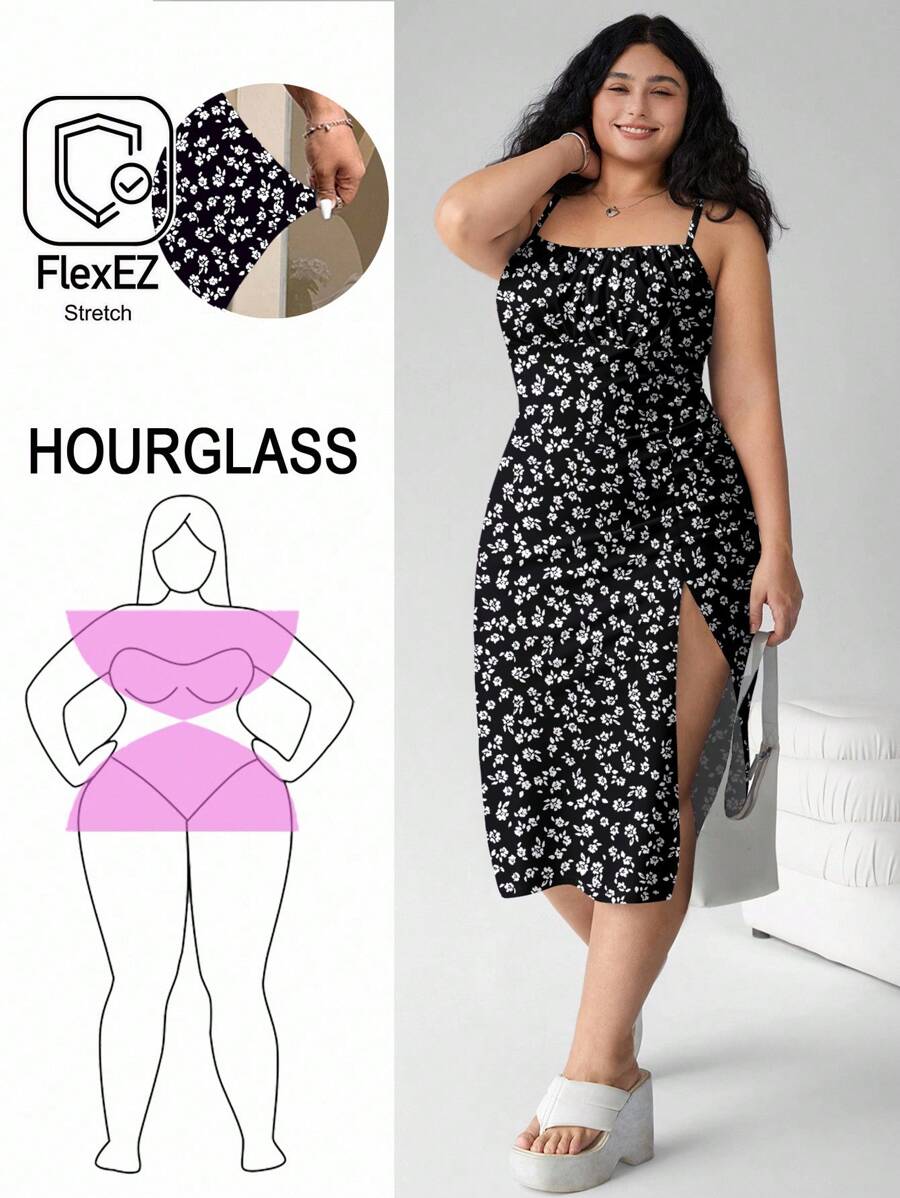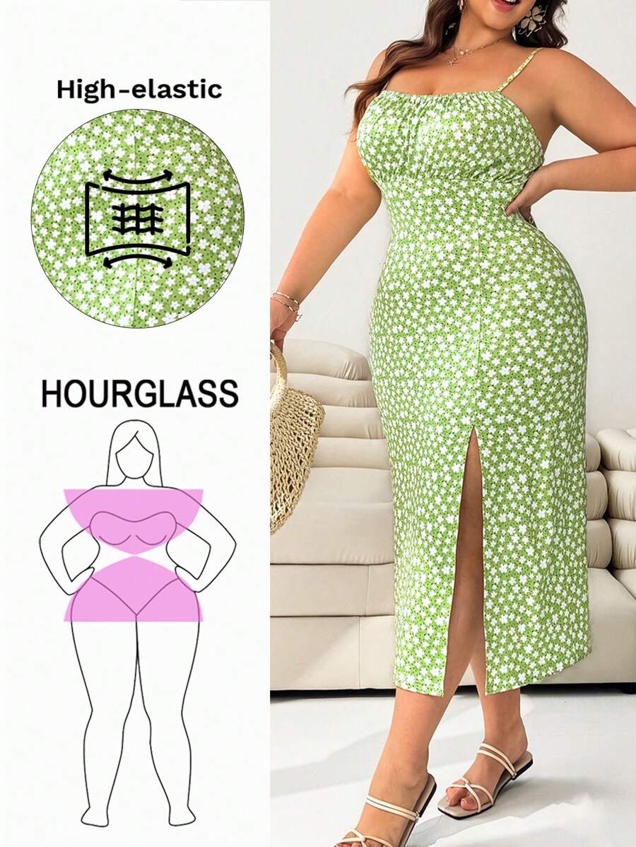 Vestido casual con tirantes de espagueti y estampado todo sobre con bajo dividido para mujeres de talla grande, vestido hawaiano para mujeres, vestido casual para mujeres, ropa de primavera, vestido de fiesta de vacaciones de estilo bohemio