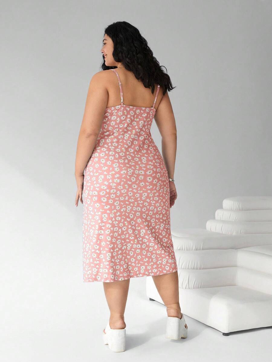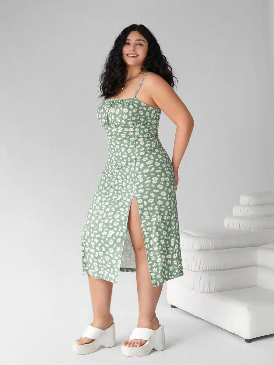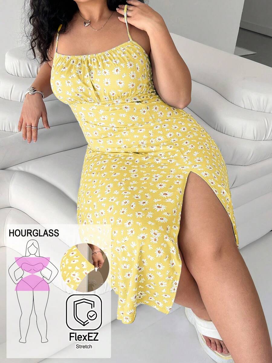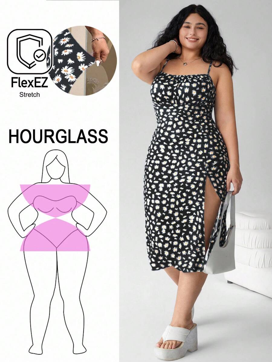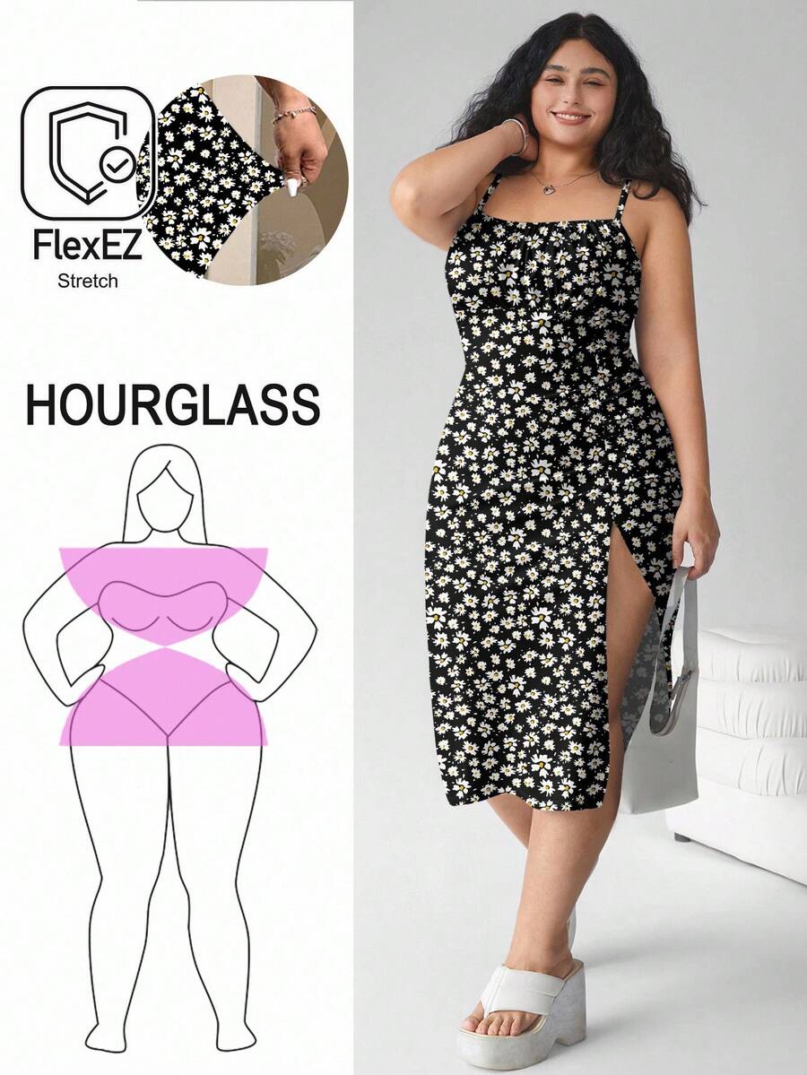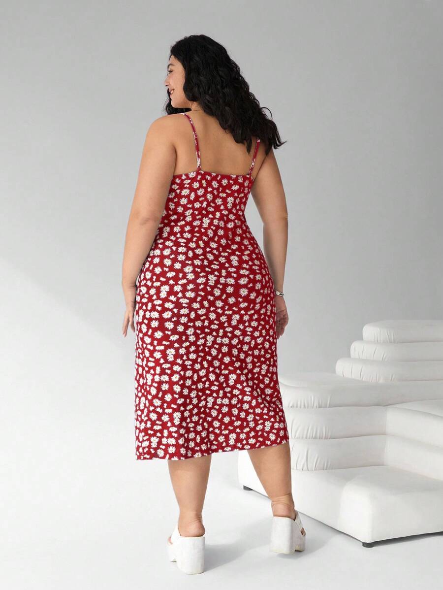 Vestido casual con tirantes de espagueti y estampado todo sobre con bajo dividido para mujeres de talla grande, vestido hawaiano para mujeres, vestido casual para mujeres, ropa de primavera, vestido de fiesta de vacaciones de estilo bohemio