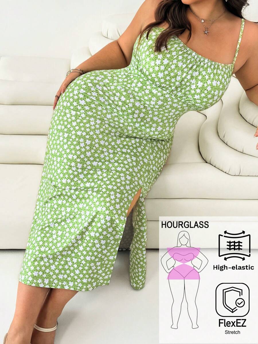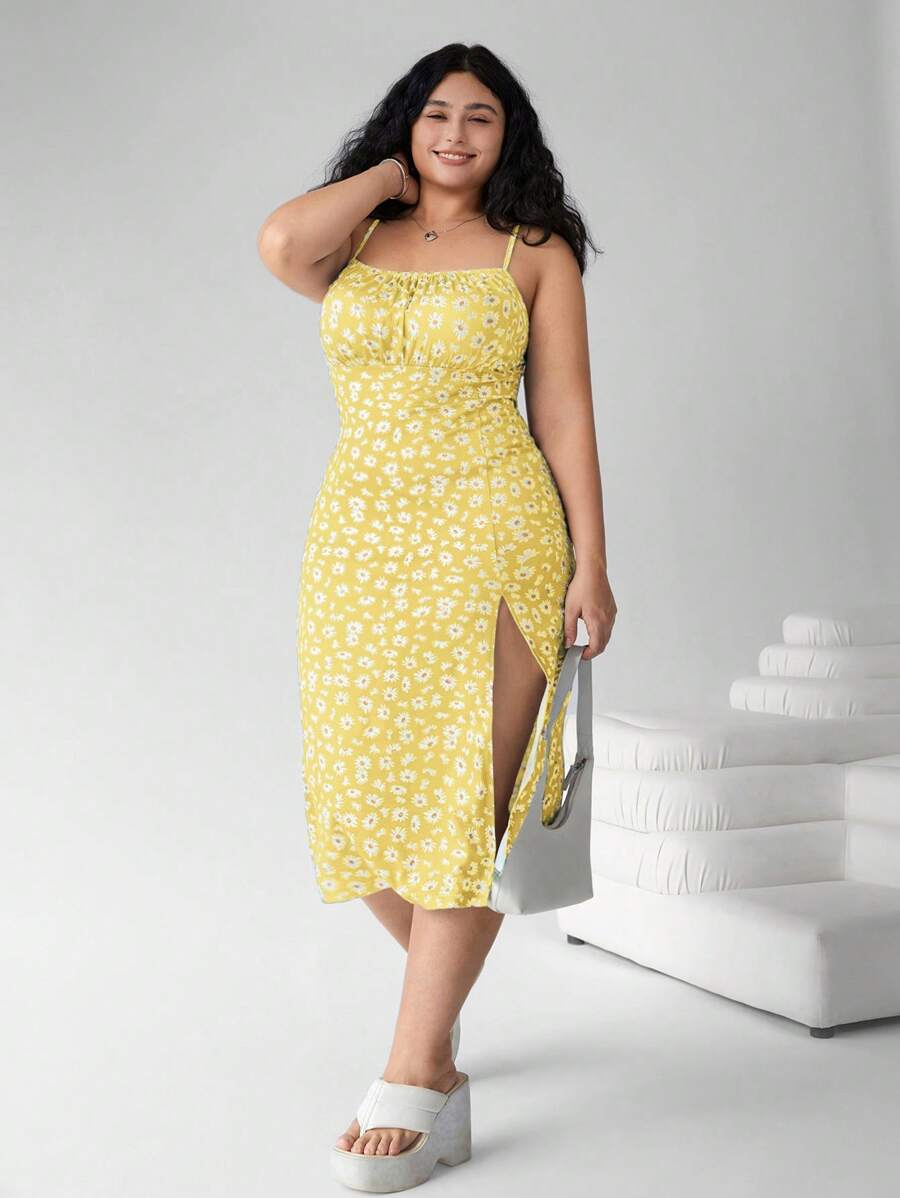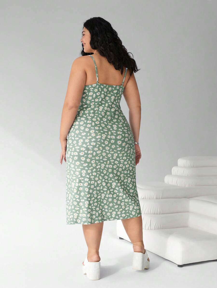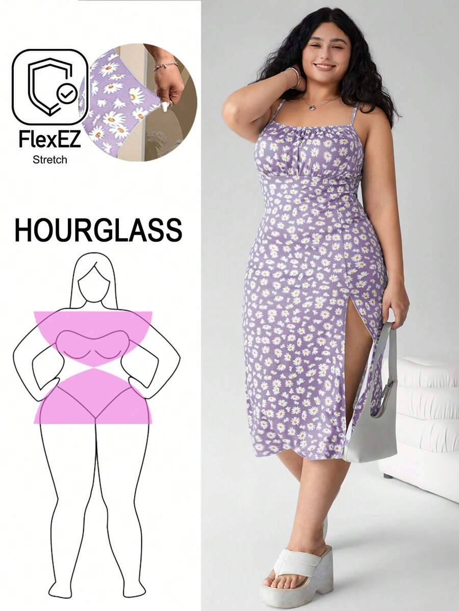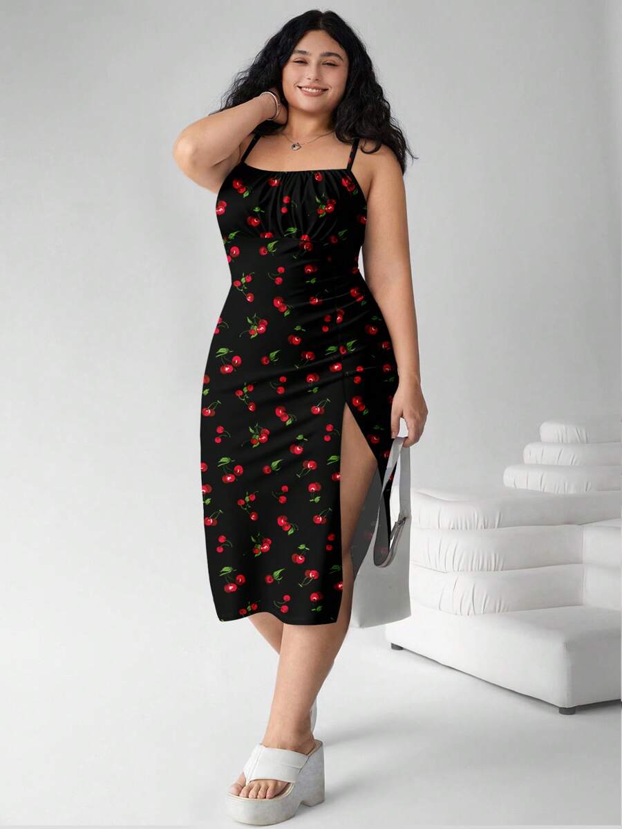 Vestido casual con tirantes de espagueti y estampado todo sobre con bajo dividido para mujeres de talla grande, vestido hawaiano para mujeres, vestido casual para mujeres, ropa de primavera, vestido de fiesta de vacaciones de estilo bohemio
