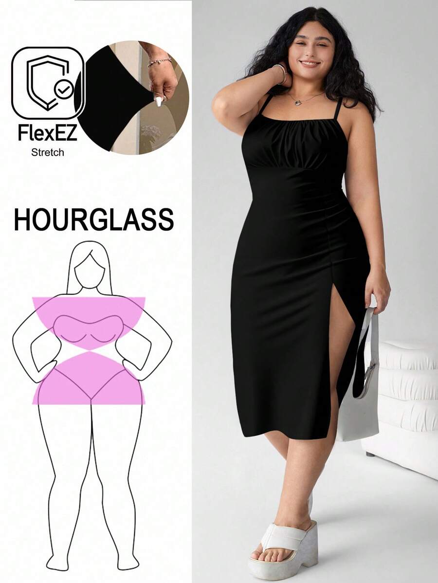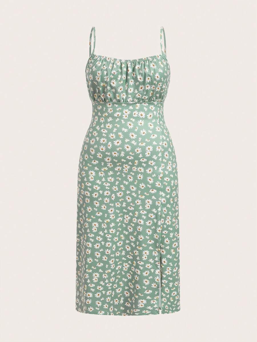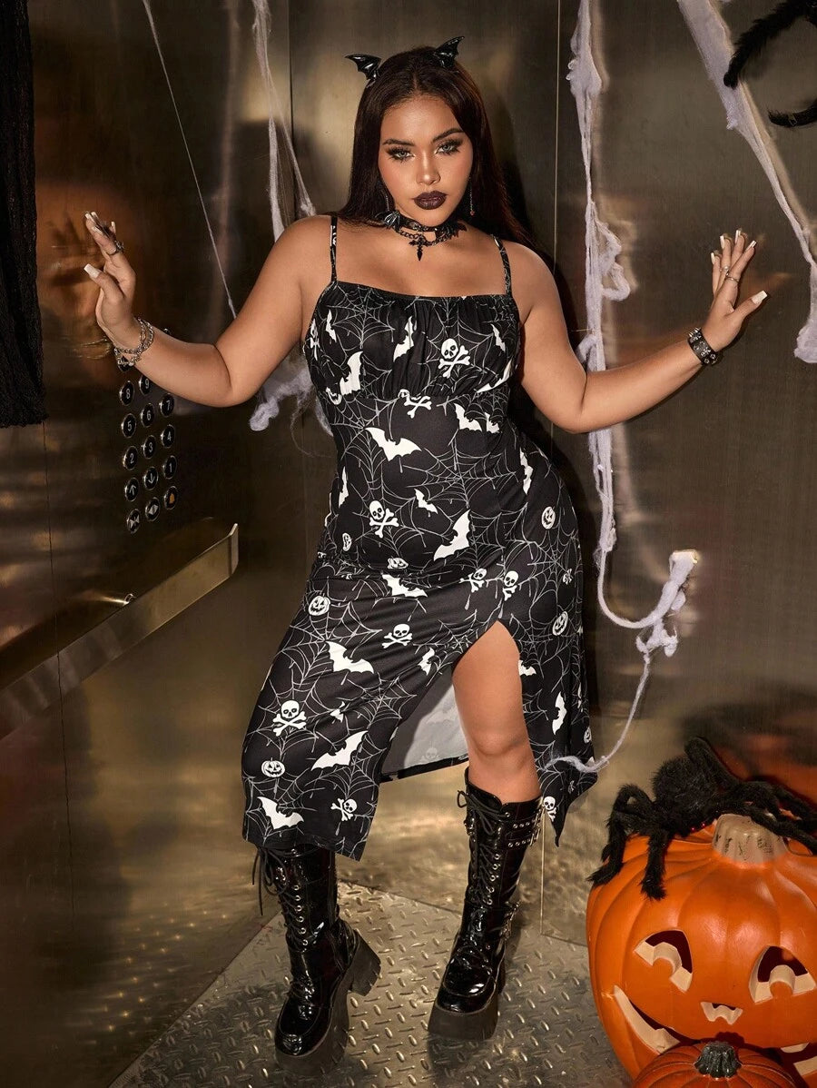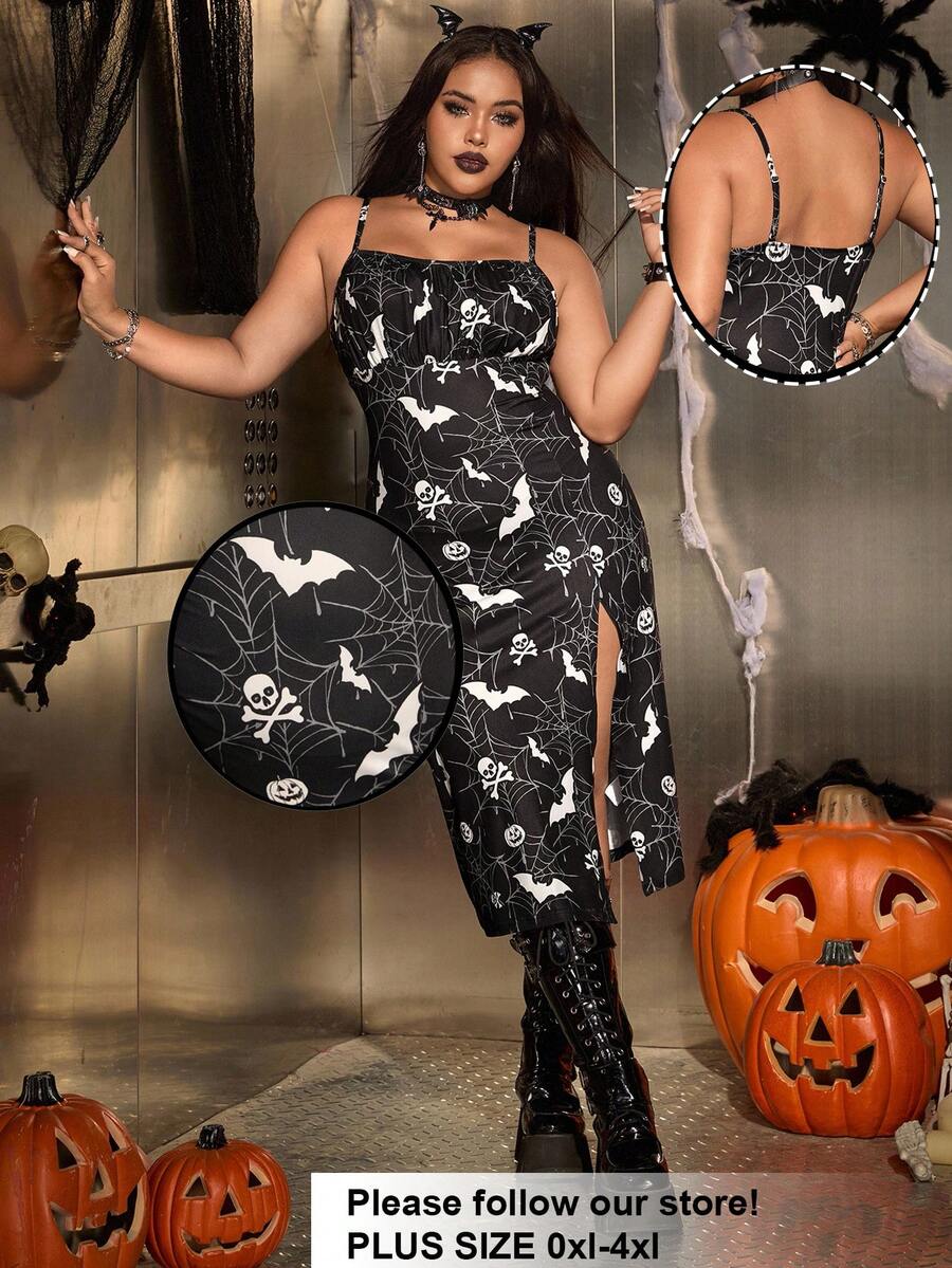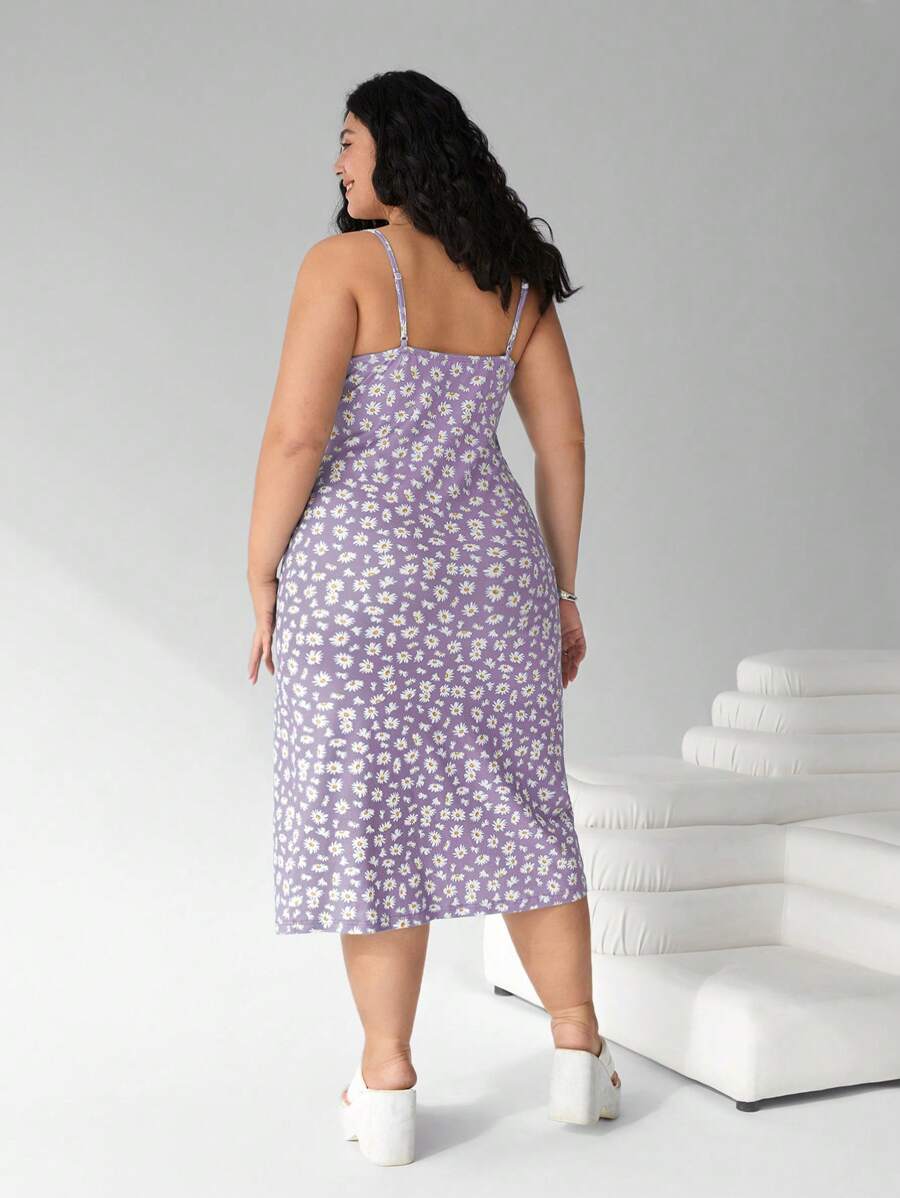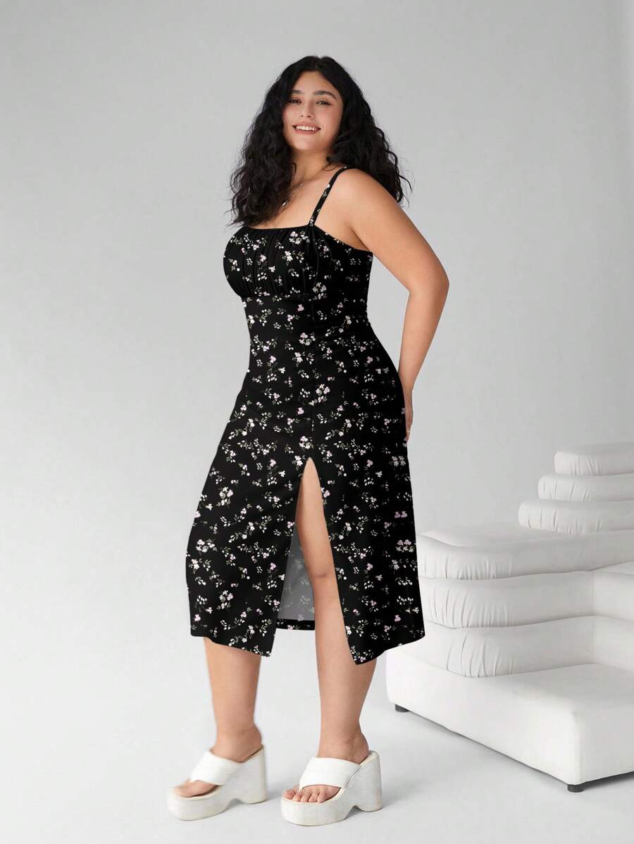 Vestido casual con tirantes de espagueti y estampado todo sobre con bajo dividido para mujeres de talla grande, vestido hawaiano para mujeres, vestido casual para mujeres, ropa de primavera, vestido de fiesta de vacaciones de estilo bohemio