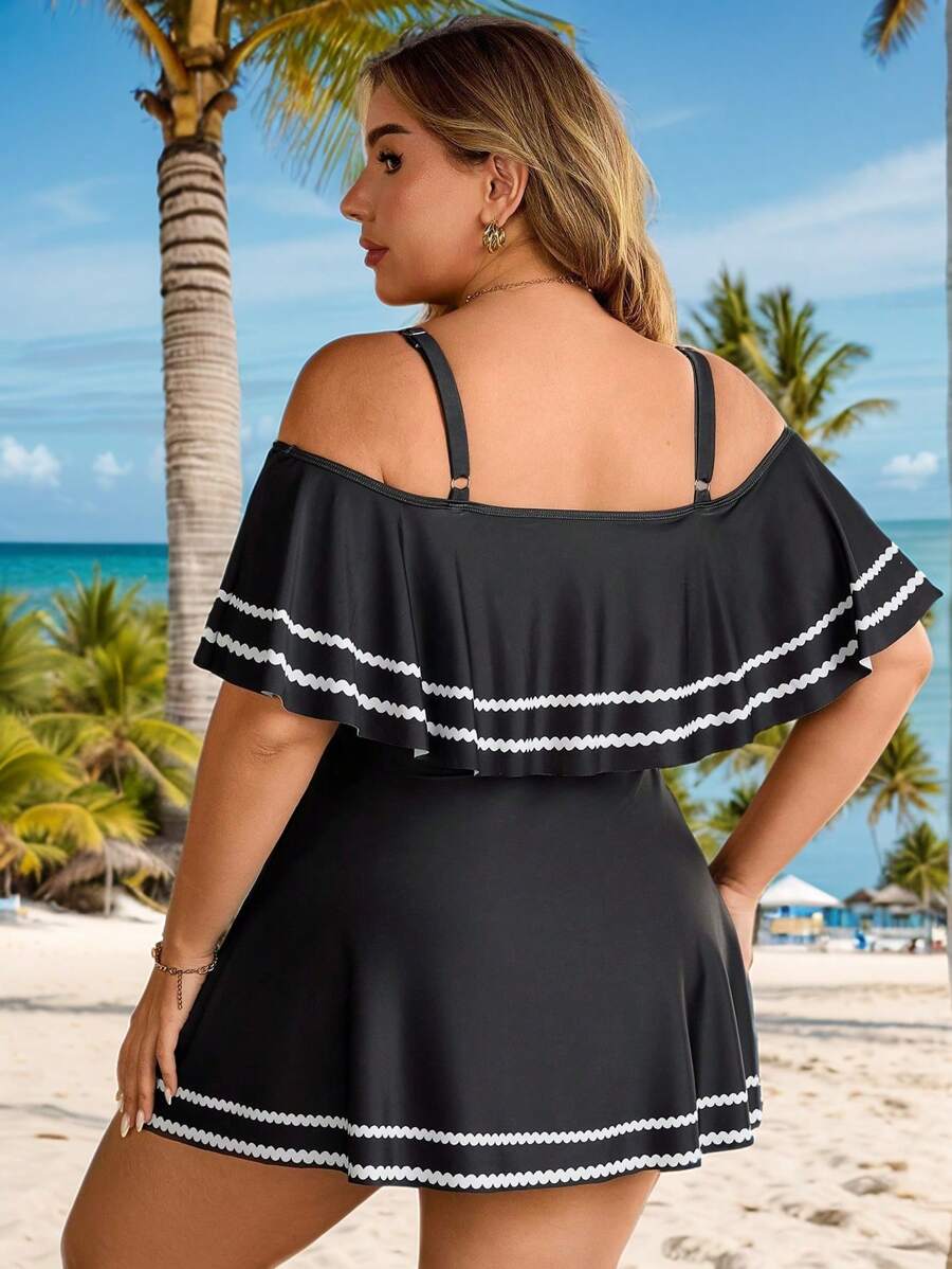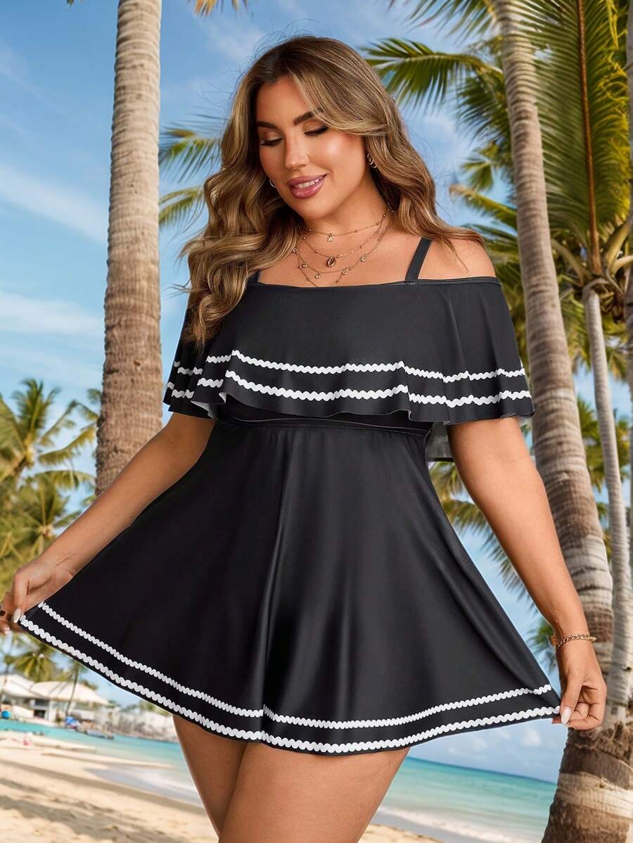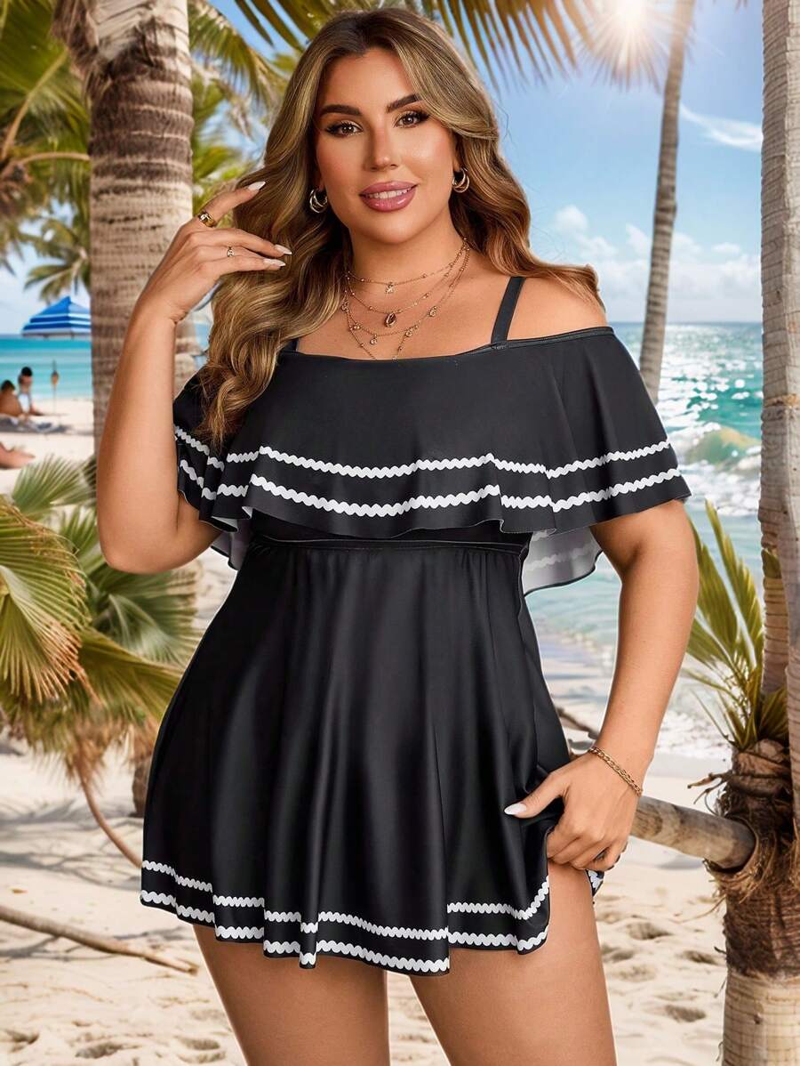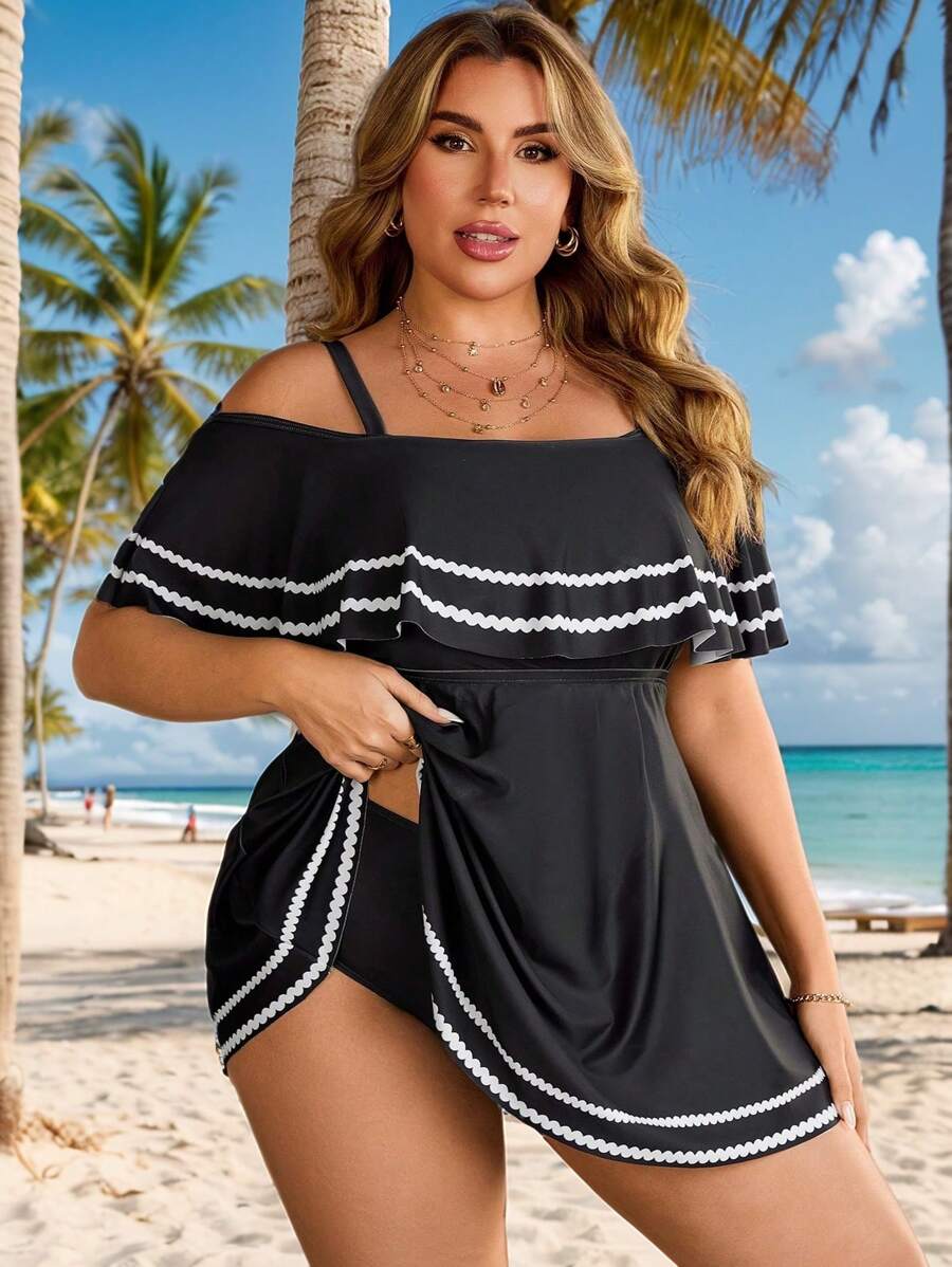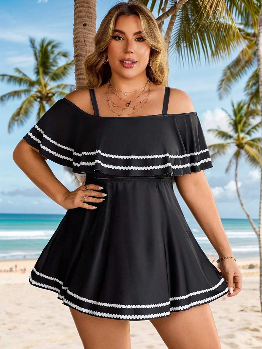 Lushore conjunto de 2 piezas vestido de playa y bottom de traje de bano con volantes y corte evase para mujer de talla grande, para vacaciones de verano