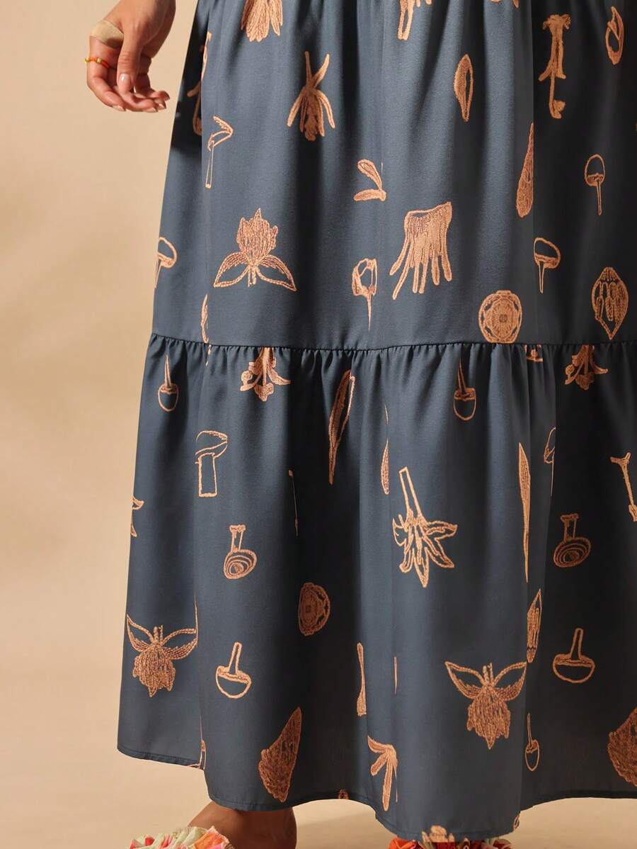 Vestido con estampado floral de cintura elastica para mujer de talla grande, uso casual de estilo y occidental para vacaciones