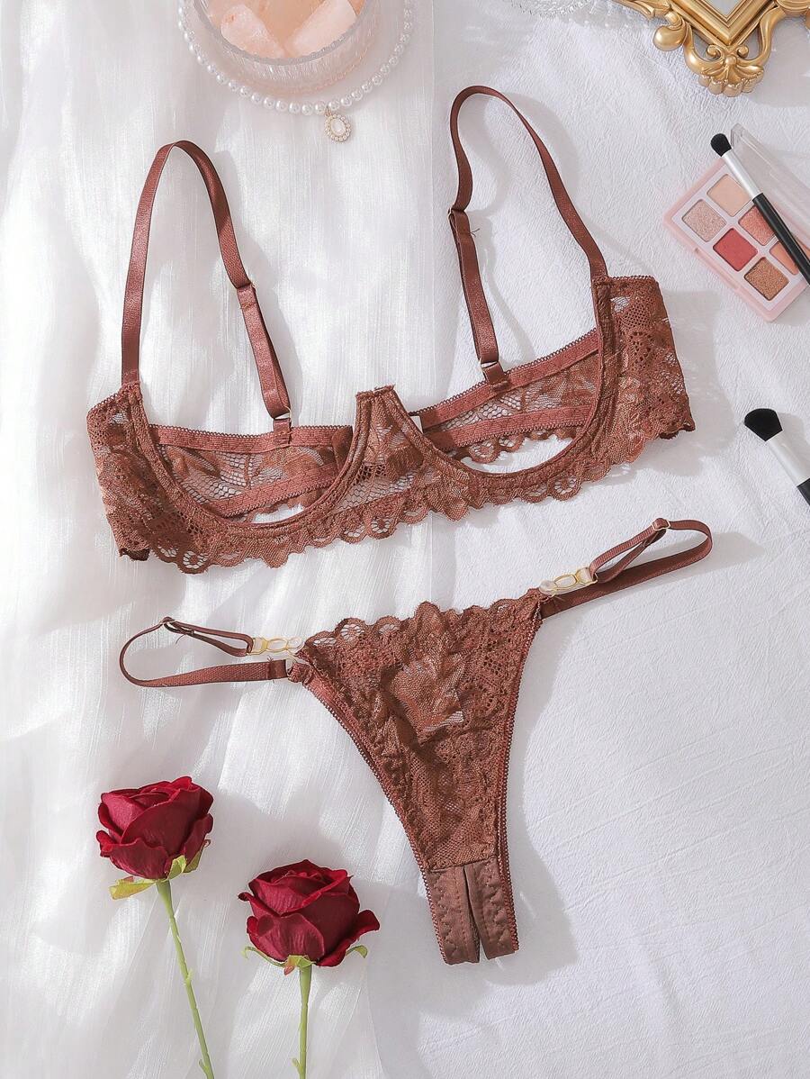 2 piezas conjunto de lenceria sexy de mujer con encaje transparente y – Muy Bonita