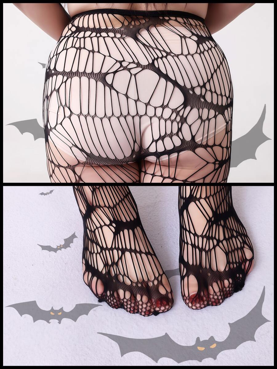 1 par de medias de red de pesca con textura agrietada y diseno complet – Muy Bonita