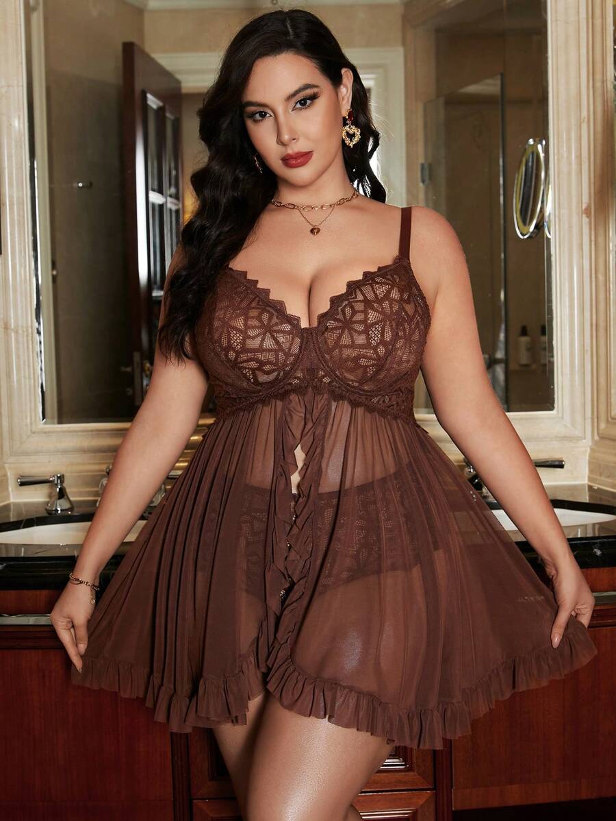 Detalles: Encaje en contraste, Gasa, Volante, Bajo con volante