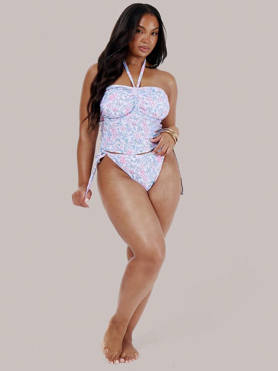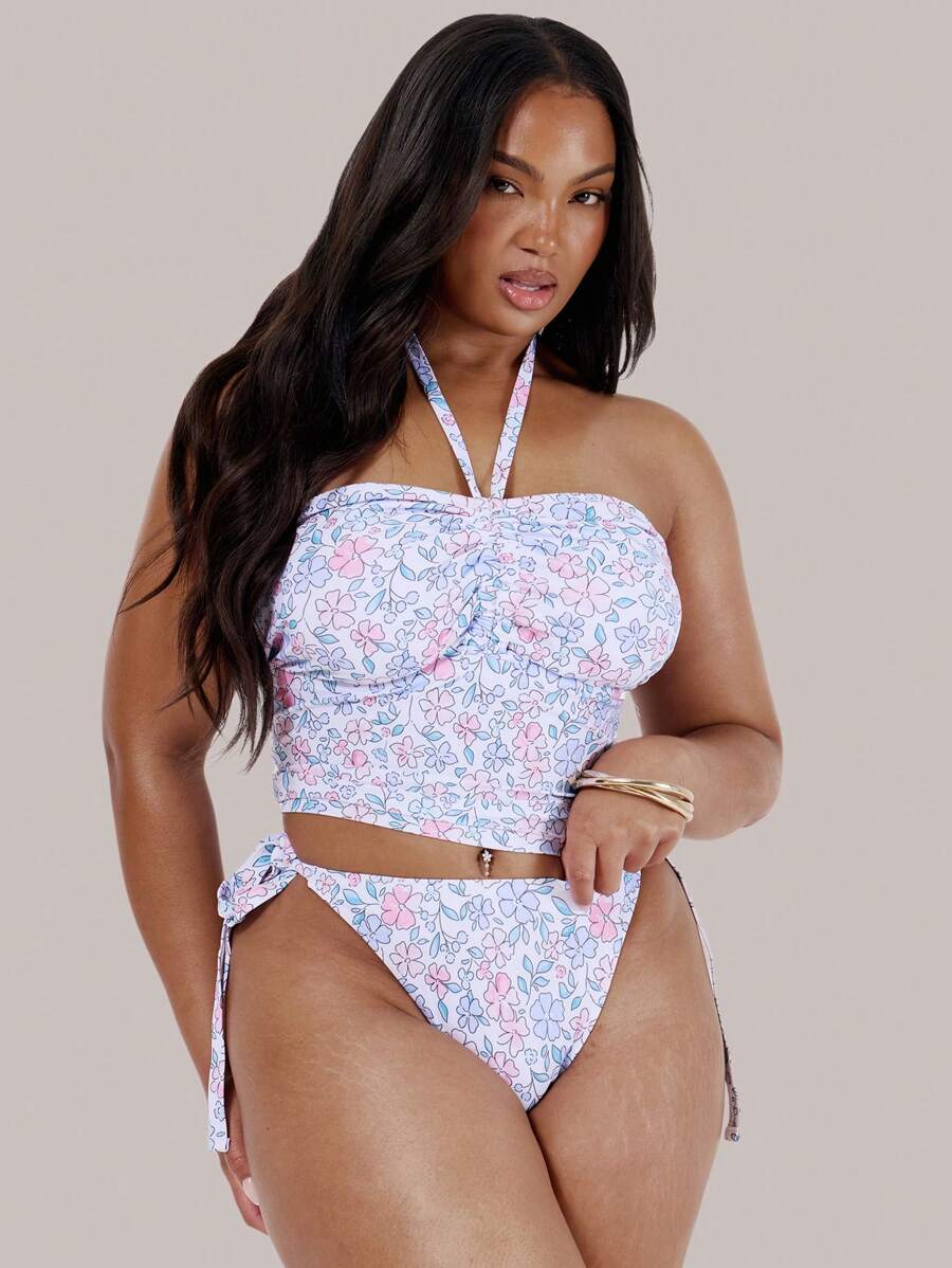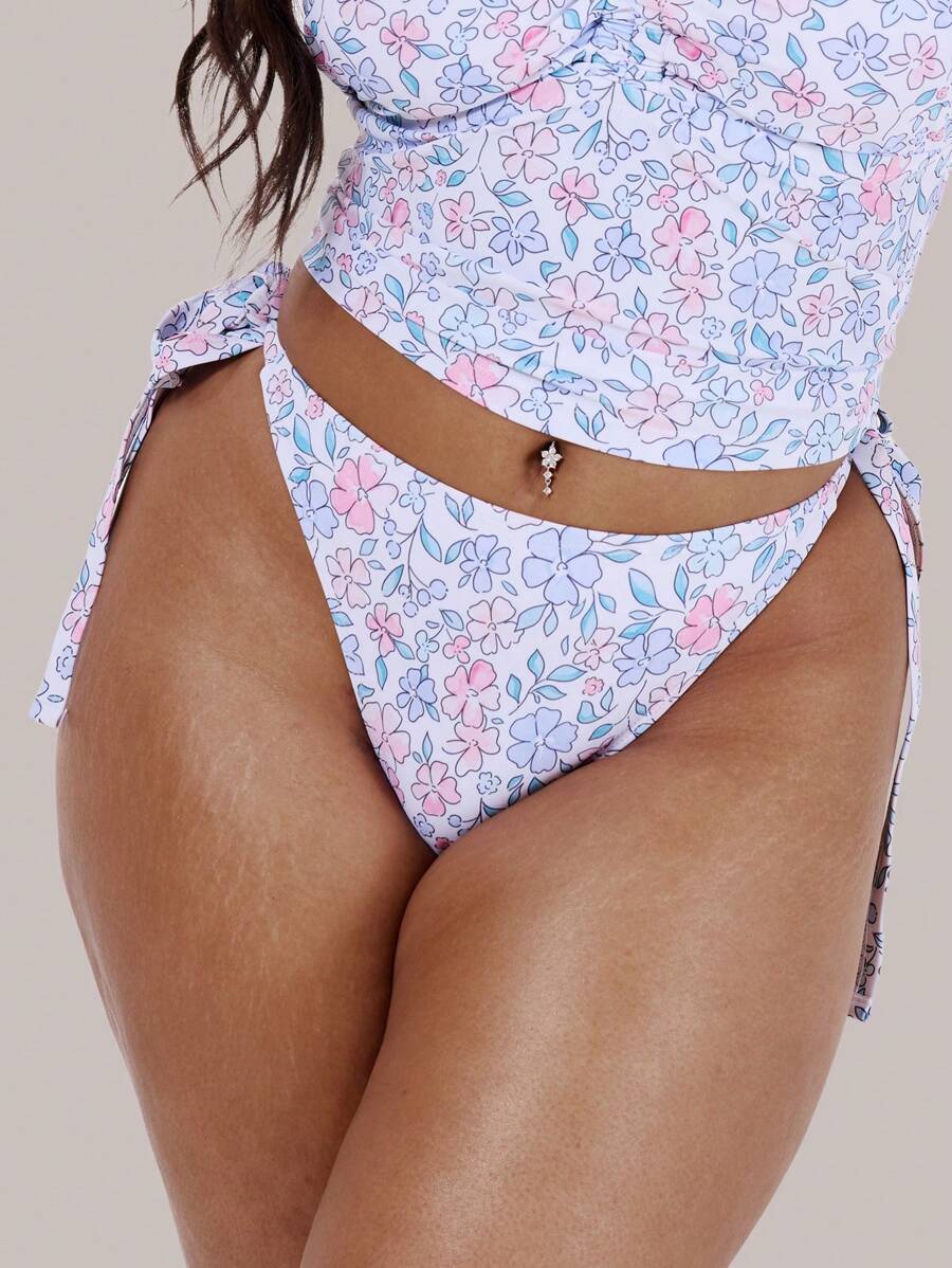 Tanga de bikini con estampado floral y lazos laterales para mujer talla grande, ideal para vacaciones, verano y playa. sexy y lindo